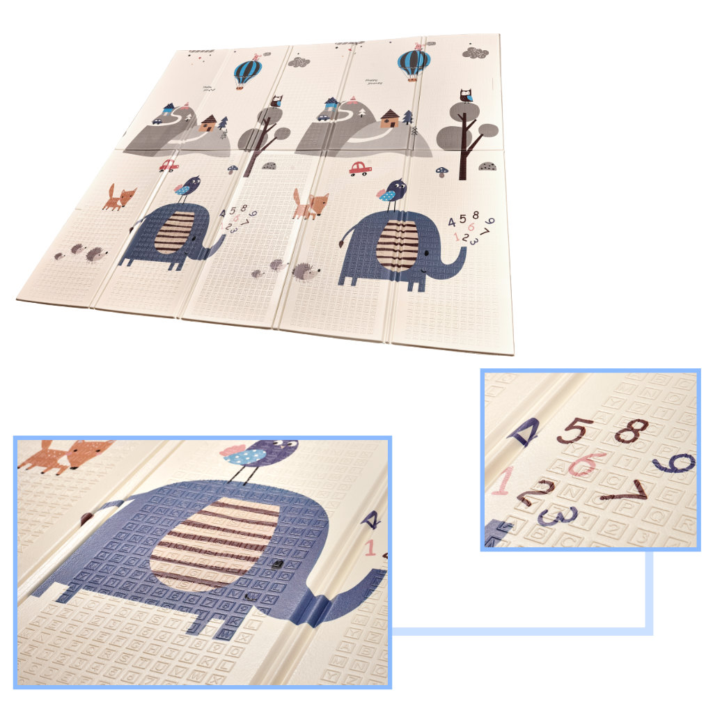 Обучающий двусторонний складной поролоновый коврик Лес слонов 180 х 200 см