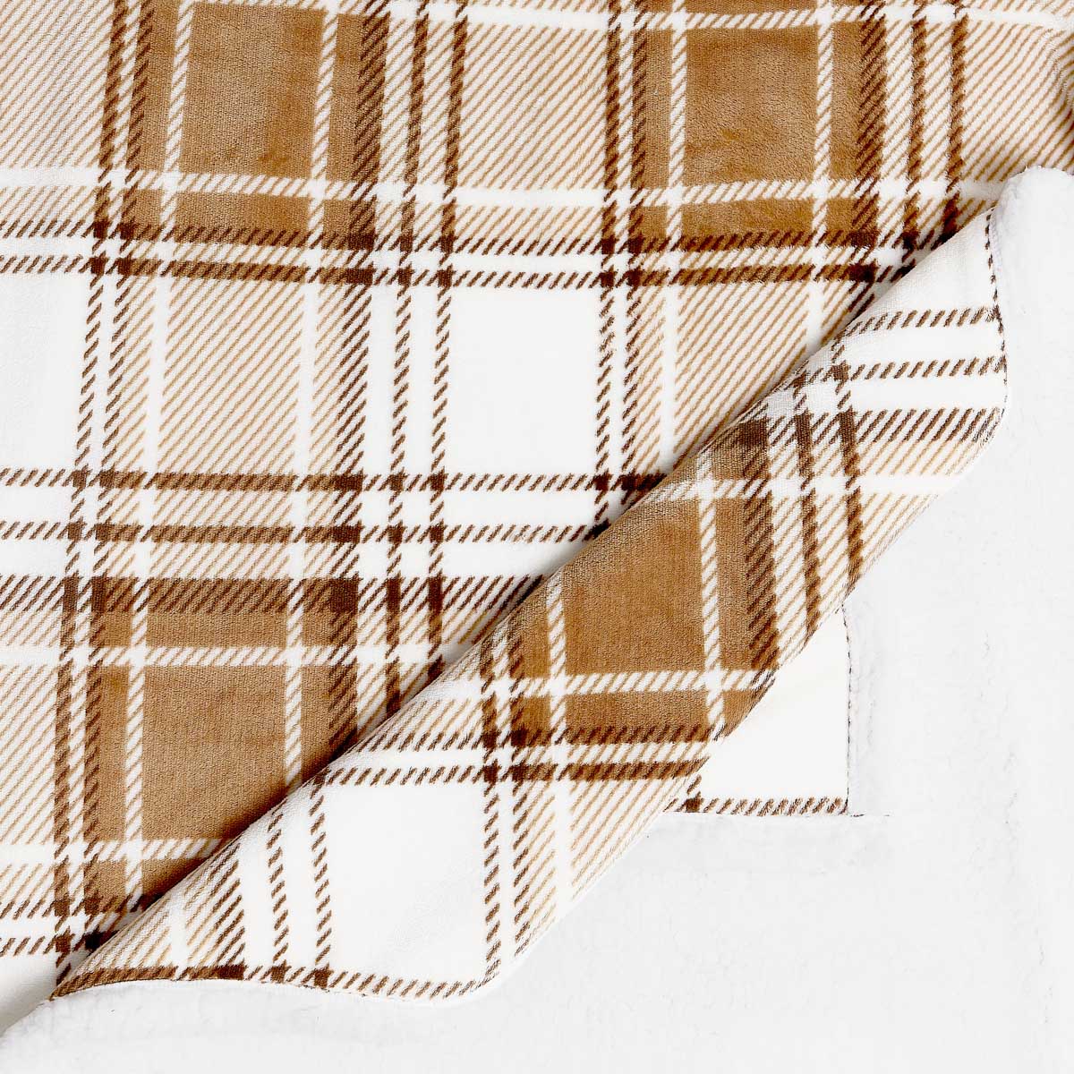 Коричневое клетчатое одеяло с шерпой