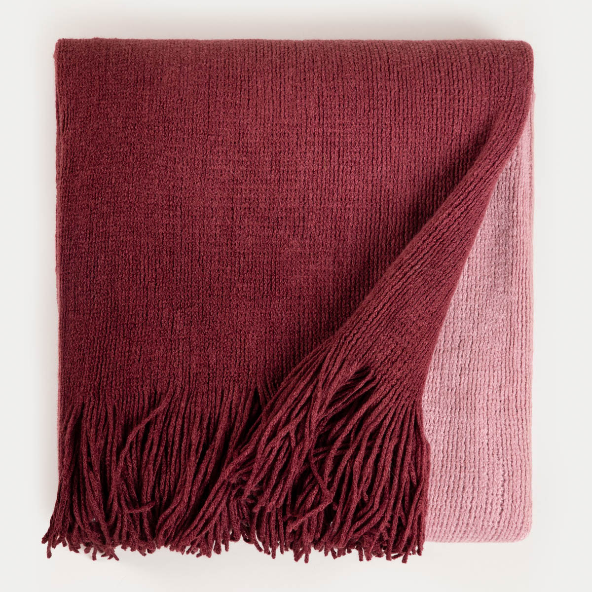 Мягкое бордовое покрывало омбре с бахромой 130 x 170 см