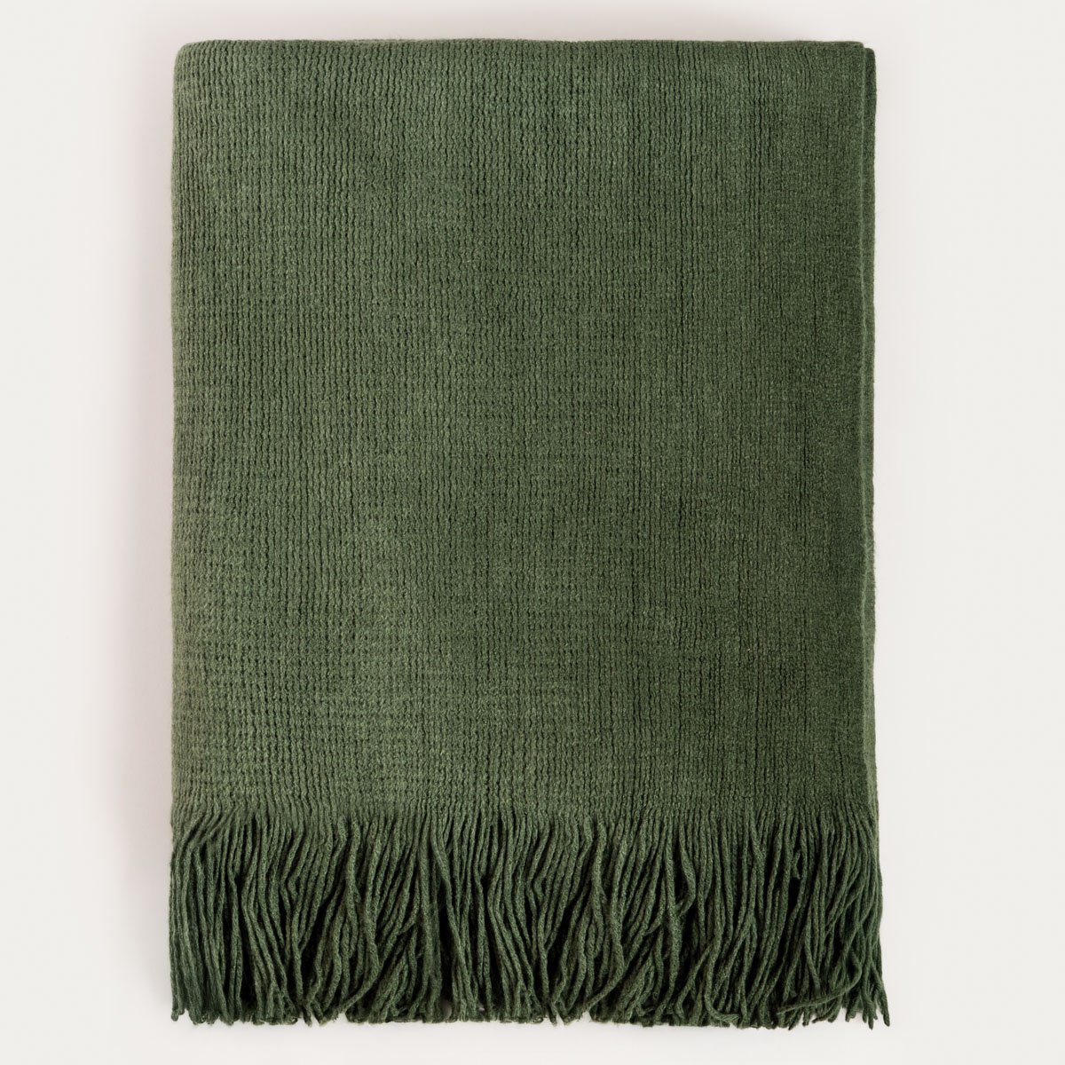 Мягкое зеленое покрывало с эффектом омбре с бахромой 130 × 170 см