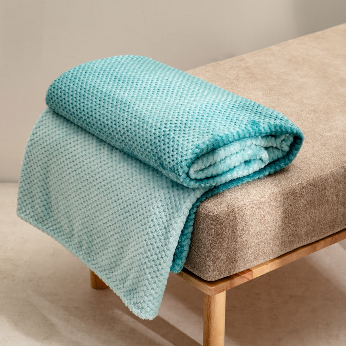 Погрузитесь в уютное тепло пледа GALEN, мягкое плетение которого прекрасно укутывает вас. Бирюзовый оттенок, переходящий в тонкий градиент омбре, привносит в интерьер свежесть и современный стиль. Он прекрасно сочетается со светлыми и натуральными аксессуарами, придавая обстановке гармоничный характер.