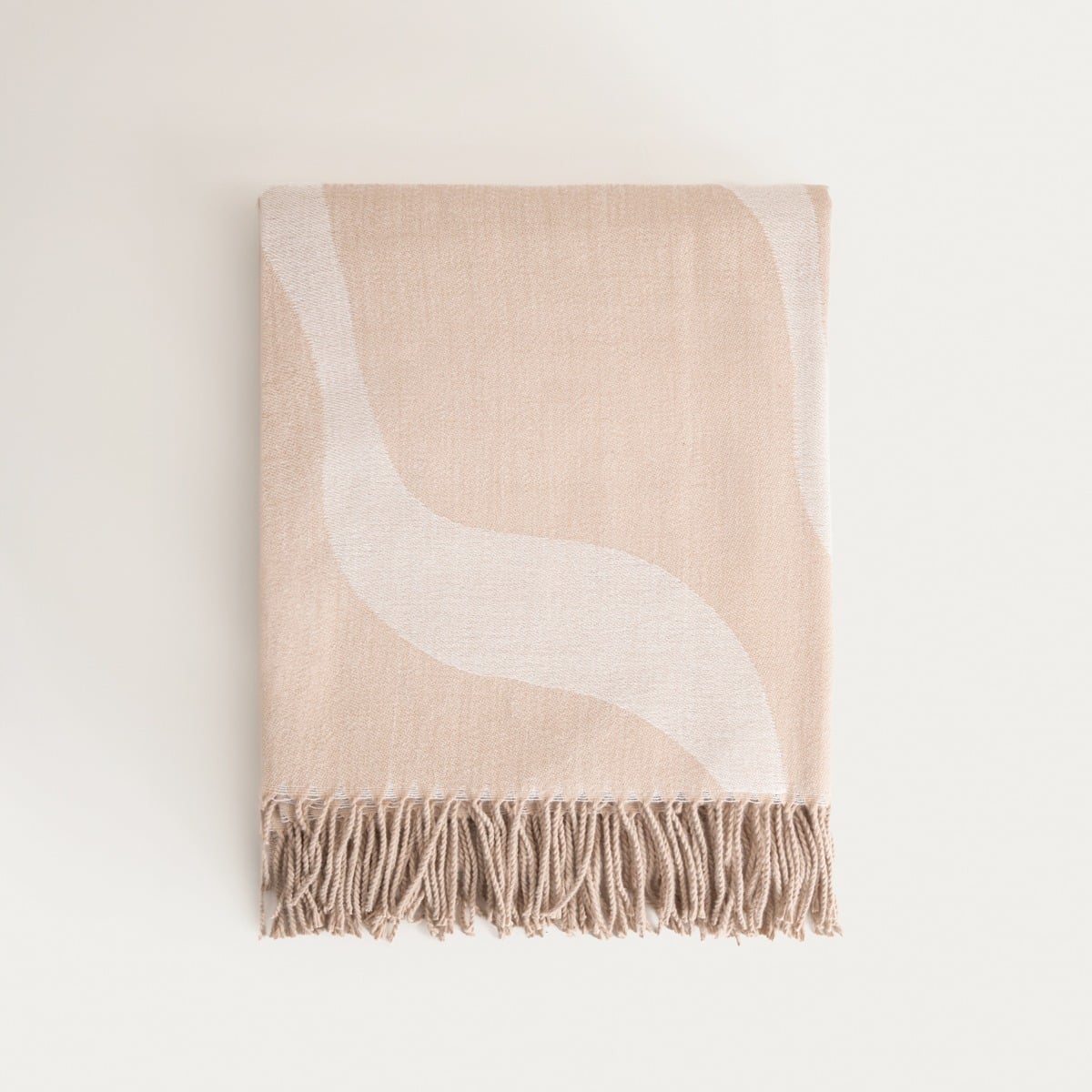 Одеяло | KALOR | бежевый жаккардовый узор с бахромой | 135×200 см | 769153