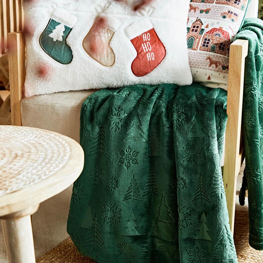 Мягкий и теплый плед HOMLA FERIA станет идеальным спутником в зимние холодные дни. Зеленая поверхность украшена тиснением в виде леденцов, что делает одеяло идеальным элементом рождественского интерьера. Днем вы можете использовать его в качестве украшения, а вечером с удовольствием укроетесь под ним, чтобы согреться во время просмотра телевизора или отдохнуть возле красиво украшенной елки.