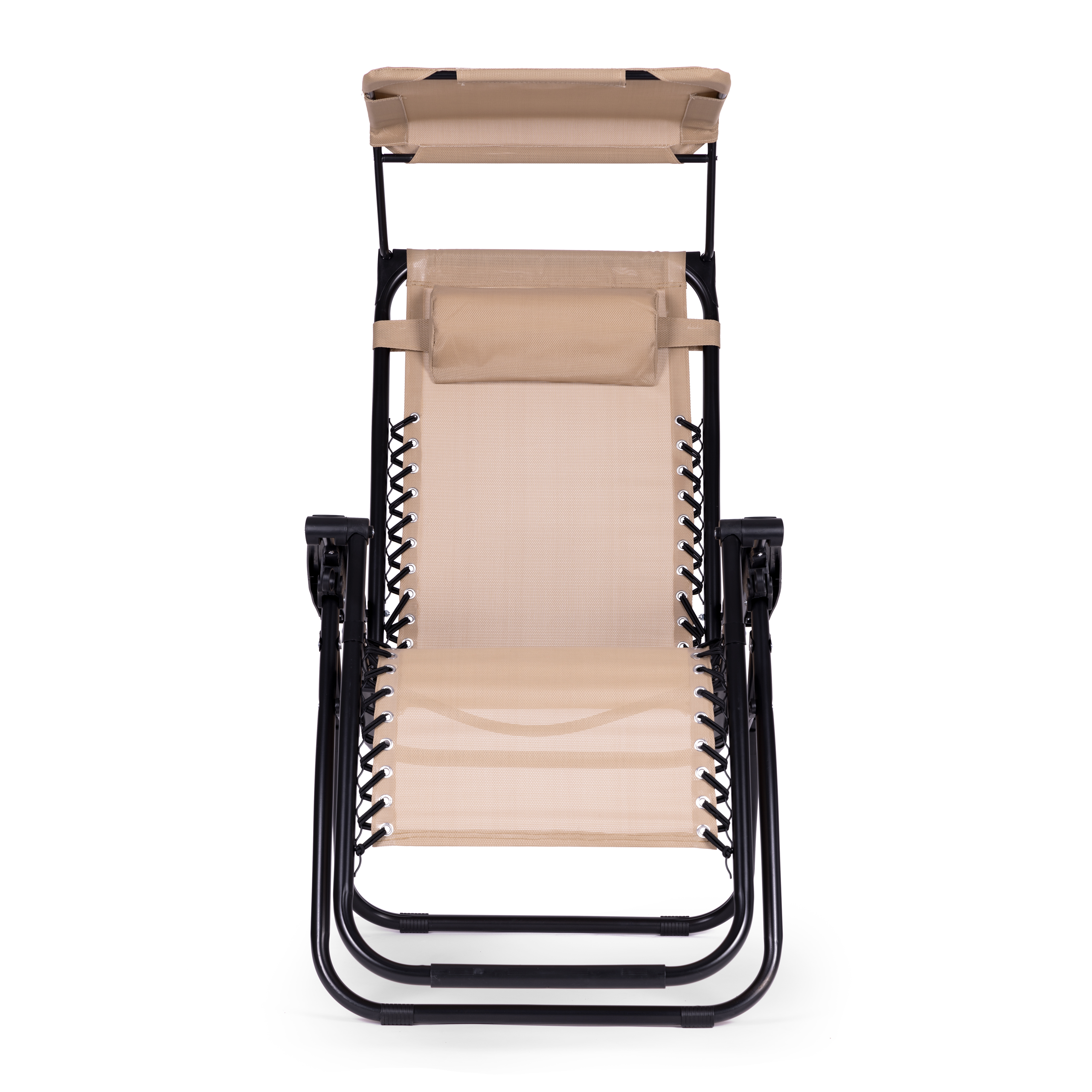 Пляжный шезлонг с регулируемой спинкой и подвижным навесом бежевый MultiGarden