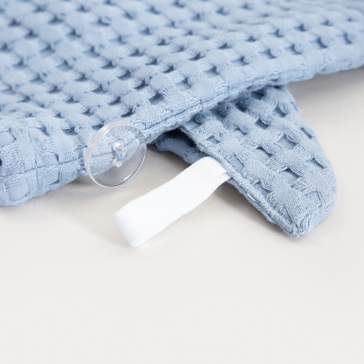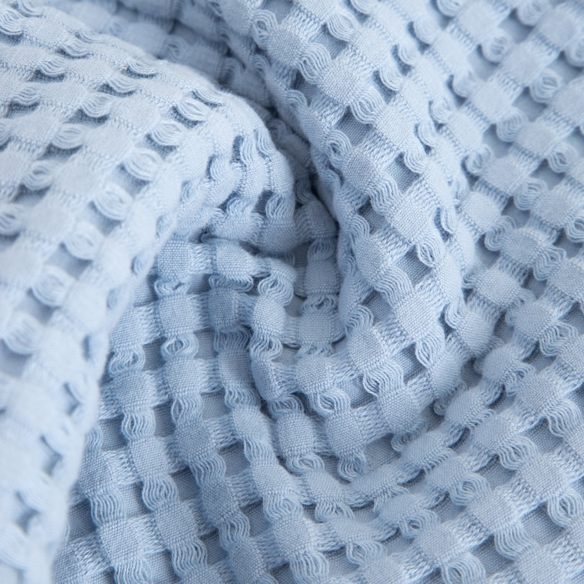 Комплект изготовлен из хлопка с вафельной текстурой, который хорошо впитывает влагу и приятен на ощупь. Рекомендуется стирать при температуре до 40°C. Гладить при макс. 150°C. Не сушить в барабане.