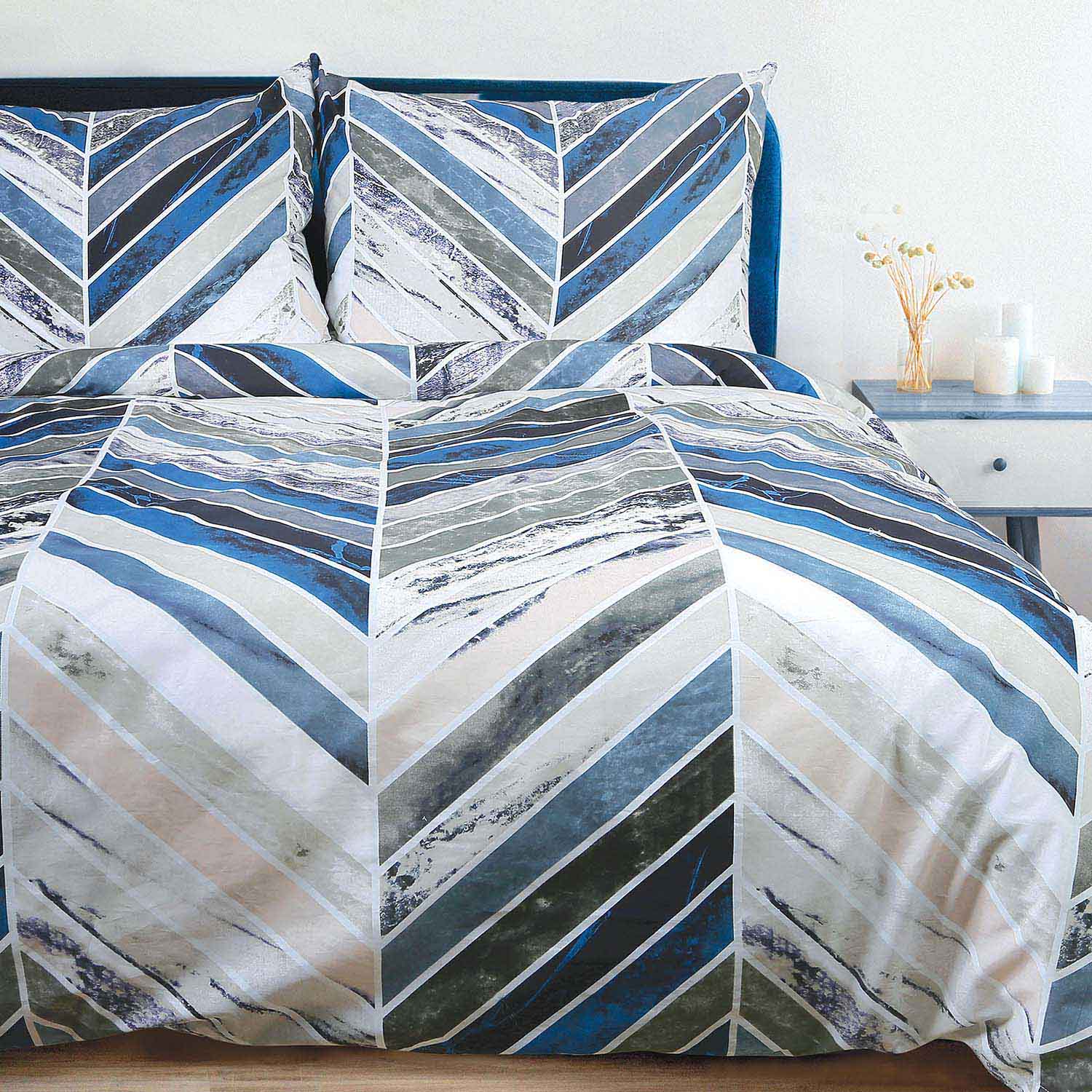 Комплекты постельного белья изготовлены из 100% хлопка высшего качества. Используемое переплетение отличается высокой плотностью и прочностью. Нежная и мягкая на ощупь ткань в сочетании с интересным вращающимся рисунком обеспечивает большой комфорт во время сна. Комплекты постельного белья изготовлены из сертифицированных тканей.