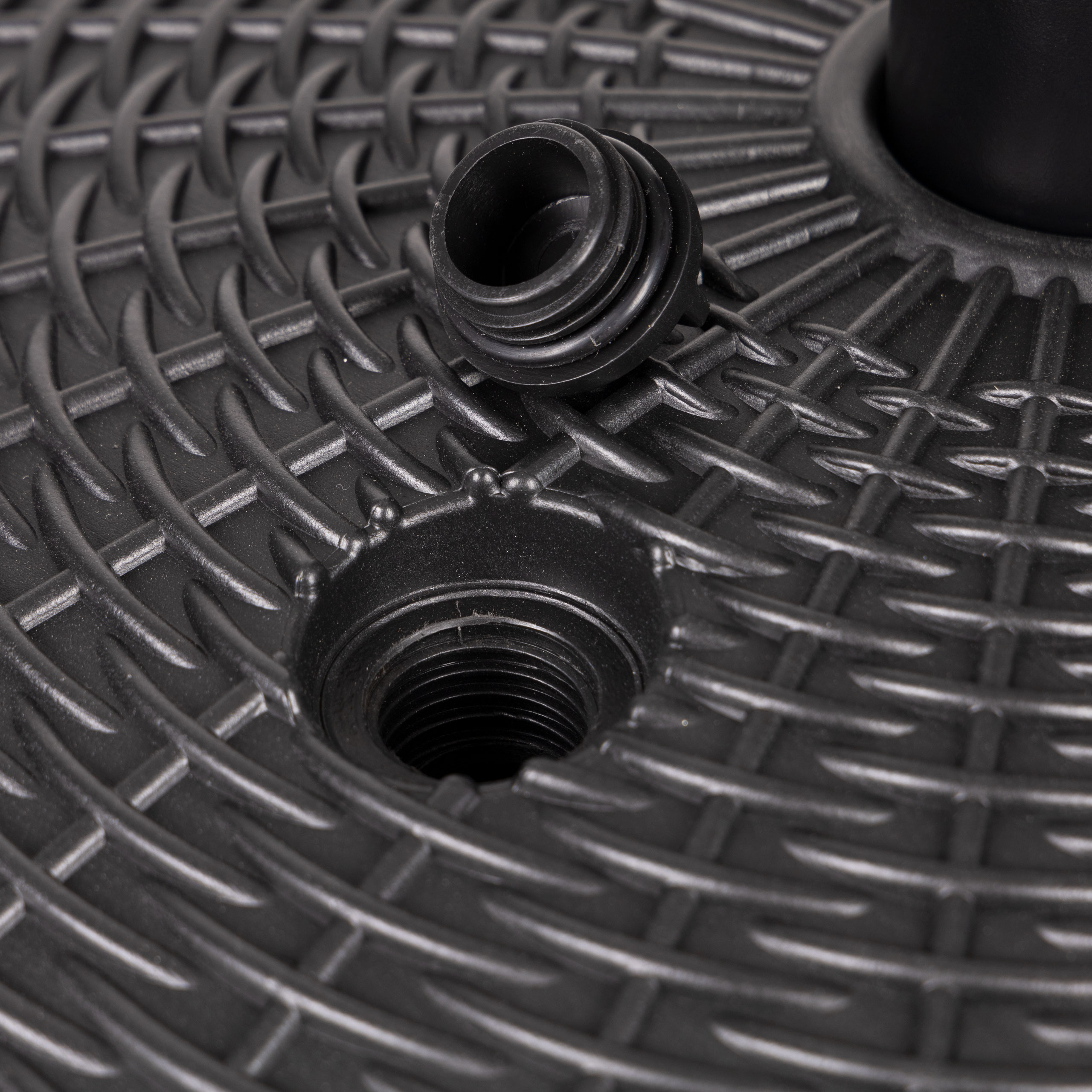 В верхней части основания находится завинчивающаяся крышка. Открутив ее, вы можете наполнить основание водой. В наполненном состоянии она весит около 22 кг, обеспечивая оптимальную устойчивость вашего зонтика.