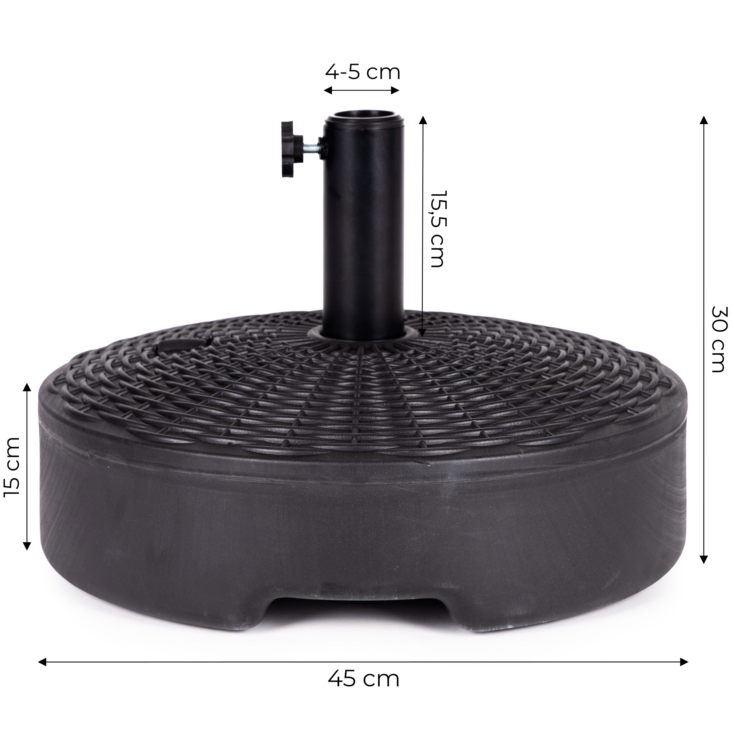 Основание идеально подходит для любого сада, террасы или любого места, где нужно установить зонт. Просто наполните ее водой, и она готова к использованию. Благодаря большому объему ( 22 литра) основание удерживает зонт в вертикальном и устойчивом положении.
