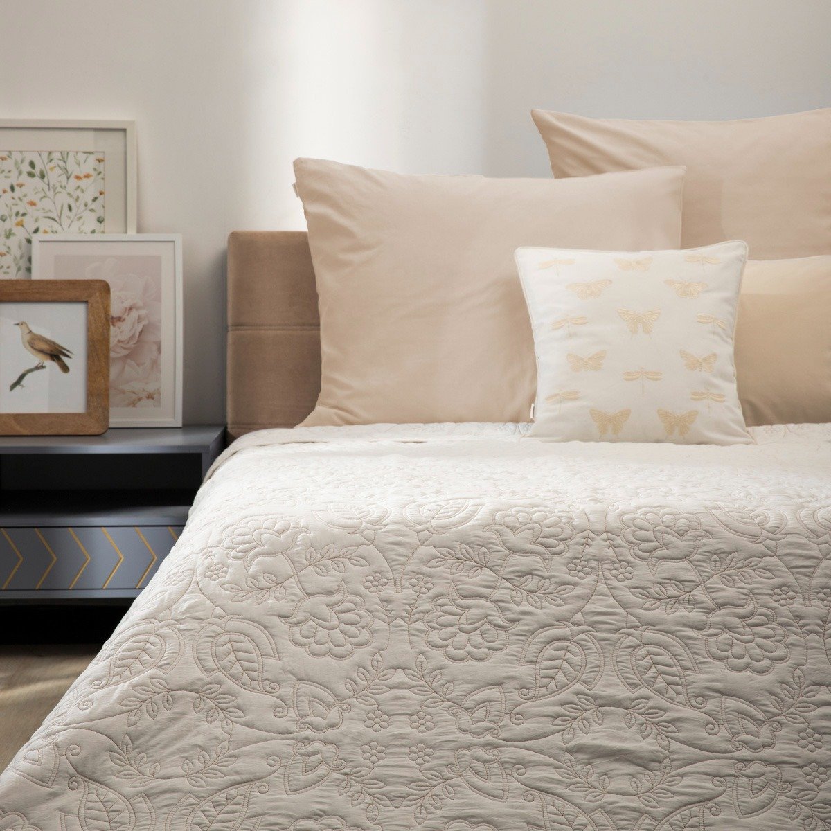 Привнесите в свою спальню мягкость и свежесть с помощью покрывала CLUDO. Его яркий дизайн, украшенный точной вышивкой в цветочных мотивах, тонко оживляет интерьер, не перегружая его. Это идеальный выбор для тех, кто ценит минимализм и уют.