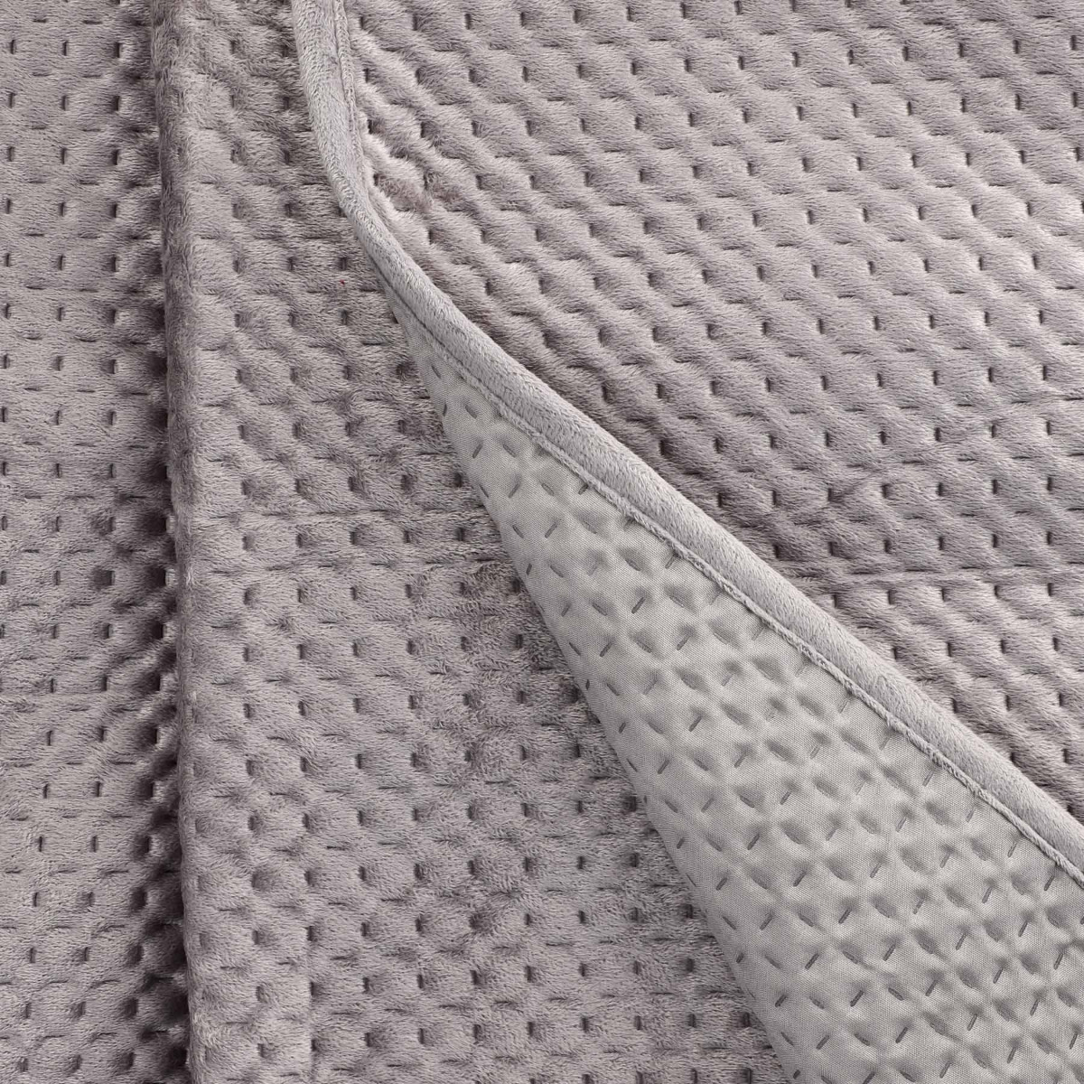 Дизайн покрывала ZEMI состоит из простой текстуры в виде мелких линий, которые, располагаясь перпендикулярно и параллельно друг другу, создают интересную композицию. Это минималистичный дизайн, но он впечатляет и радует глаз. Кроме того, это серое покрывало выполнено из приятного велюрового материала, который своим теплом укроет не только нашу кровать, но и нас самих в холодные вечера.