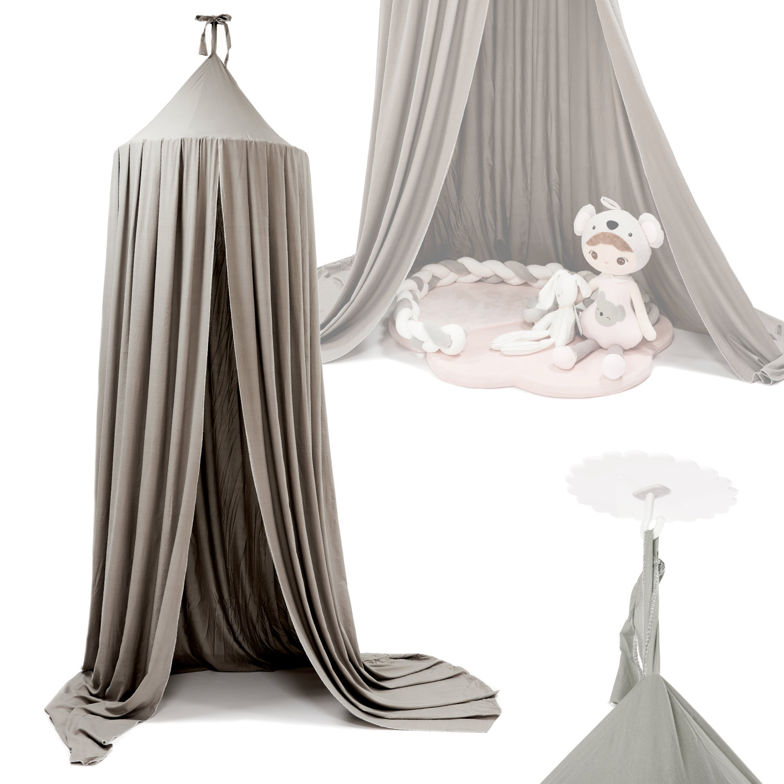 Серый балдахин для детской кроватки: