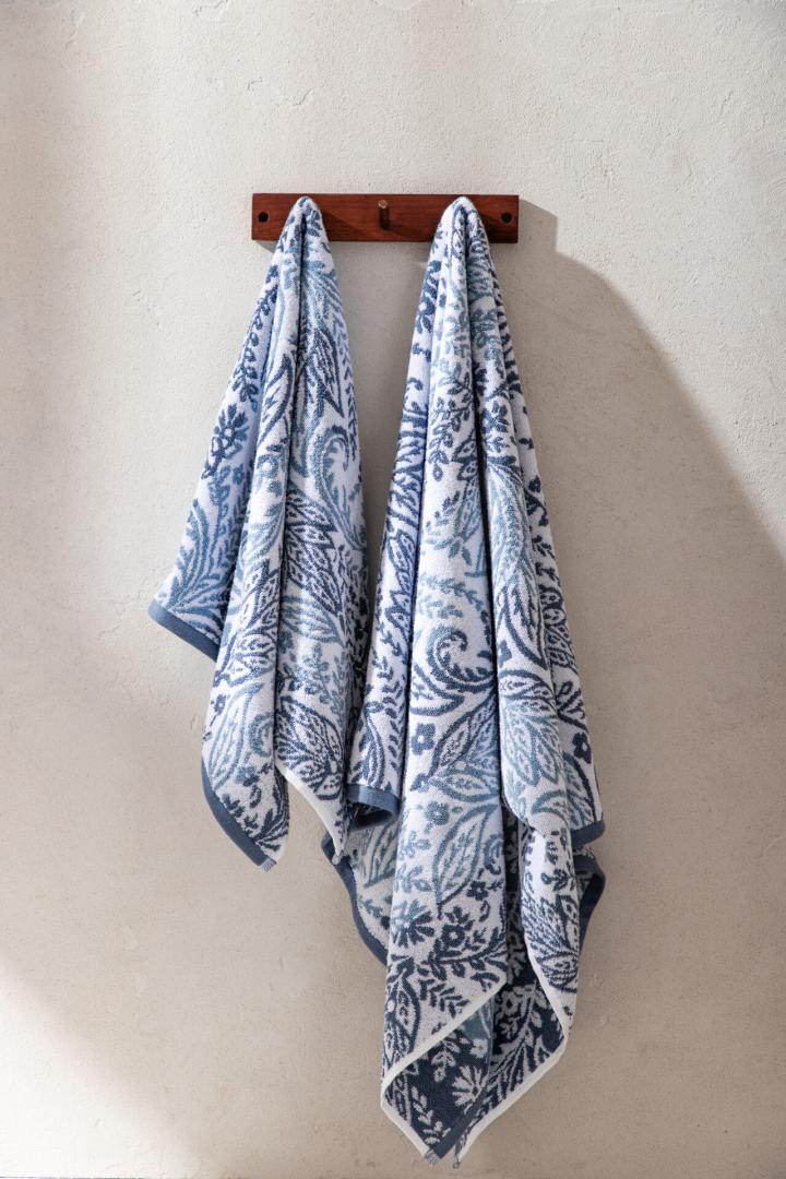 Полотенце RONU сочетает в себе классический дизайн и современную функциональность. Декоративные узоры в оттенках синего и темно-синего придают ему элегантность. Оно идеально подойдет как для домашнего использования, так и для поездок на природу.