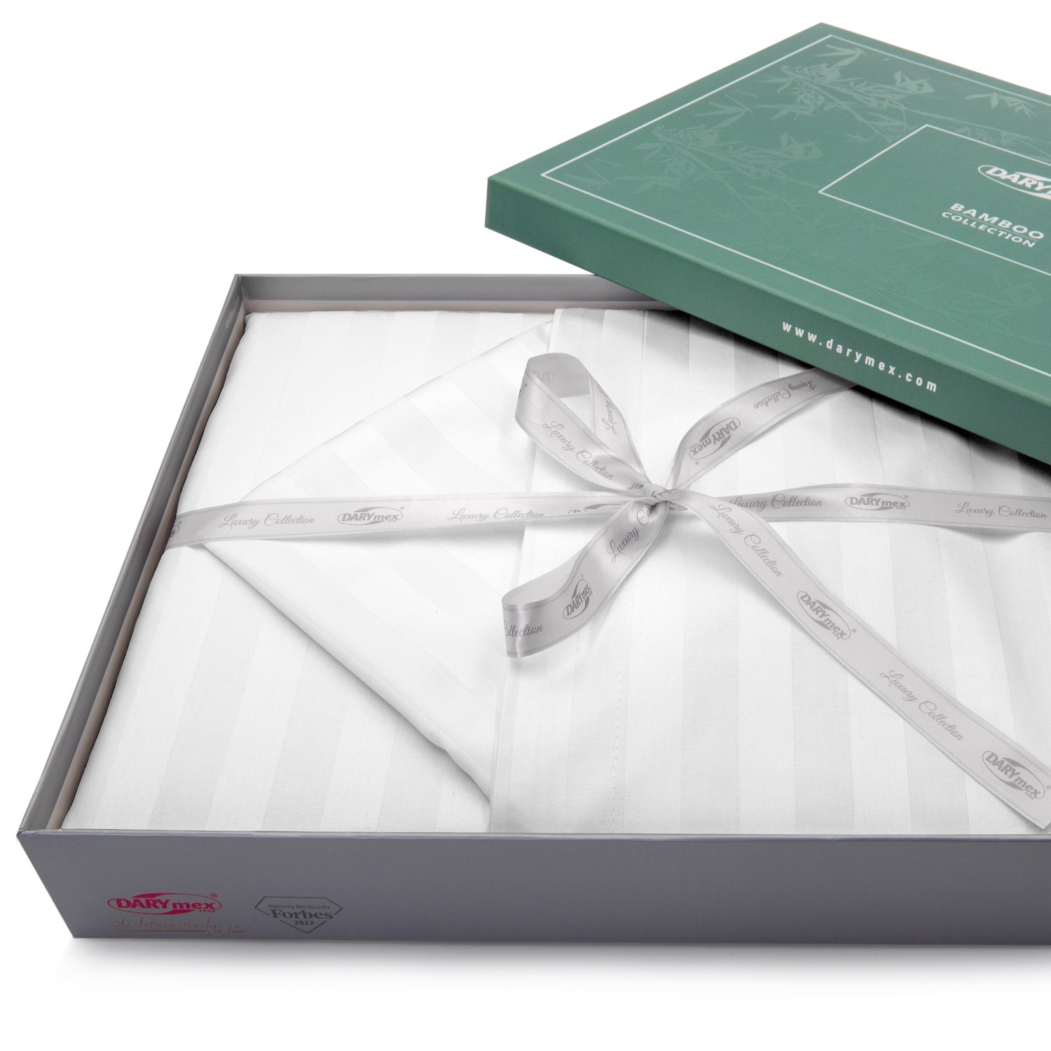 Эксклюзивный комплект постельного белья из высококачественной бамбуково-хлопковой ткани сатинового переплетения с нежным блеском. Классический и стильный рисунок в полоску шириной 2 см придает ему неповторимую элегантность. Ткань сочетает в себе антибактериальные и терморегулирующие свойства с долговечностью и натуральностью хлопка. Она очень мягкая и приятная на ощупь. Комплект сшит в элегантной и аккуратной манере. Наволочки размером 70х80 см имеют декоративную окантовку 4 см, а молния закрыта складкой. Весь комплект упакован в эксклюзивную коробку, что делает его роскошным подарком. Комплект постельного белья изготовлен из сертифицированных тканей.