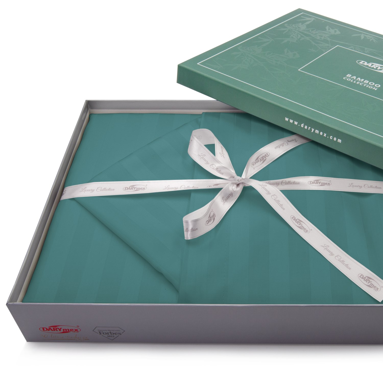 Постельное белье из бамбуково-хлопкового сатина (П) STRIPE SEA TURQUOISE/160×200 +2x70x80 с ватином +4x40x40 BAMBOO
