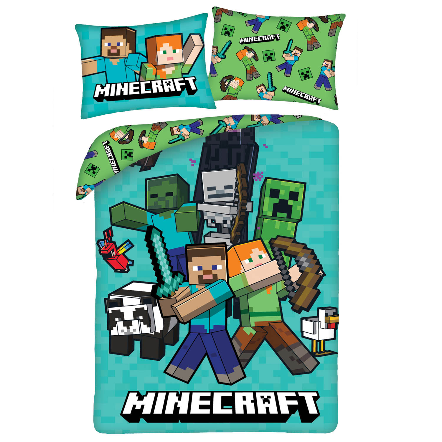 Постельное белье из микрофибры 140×200+1p70x90 Minecraft бирюзовое