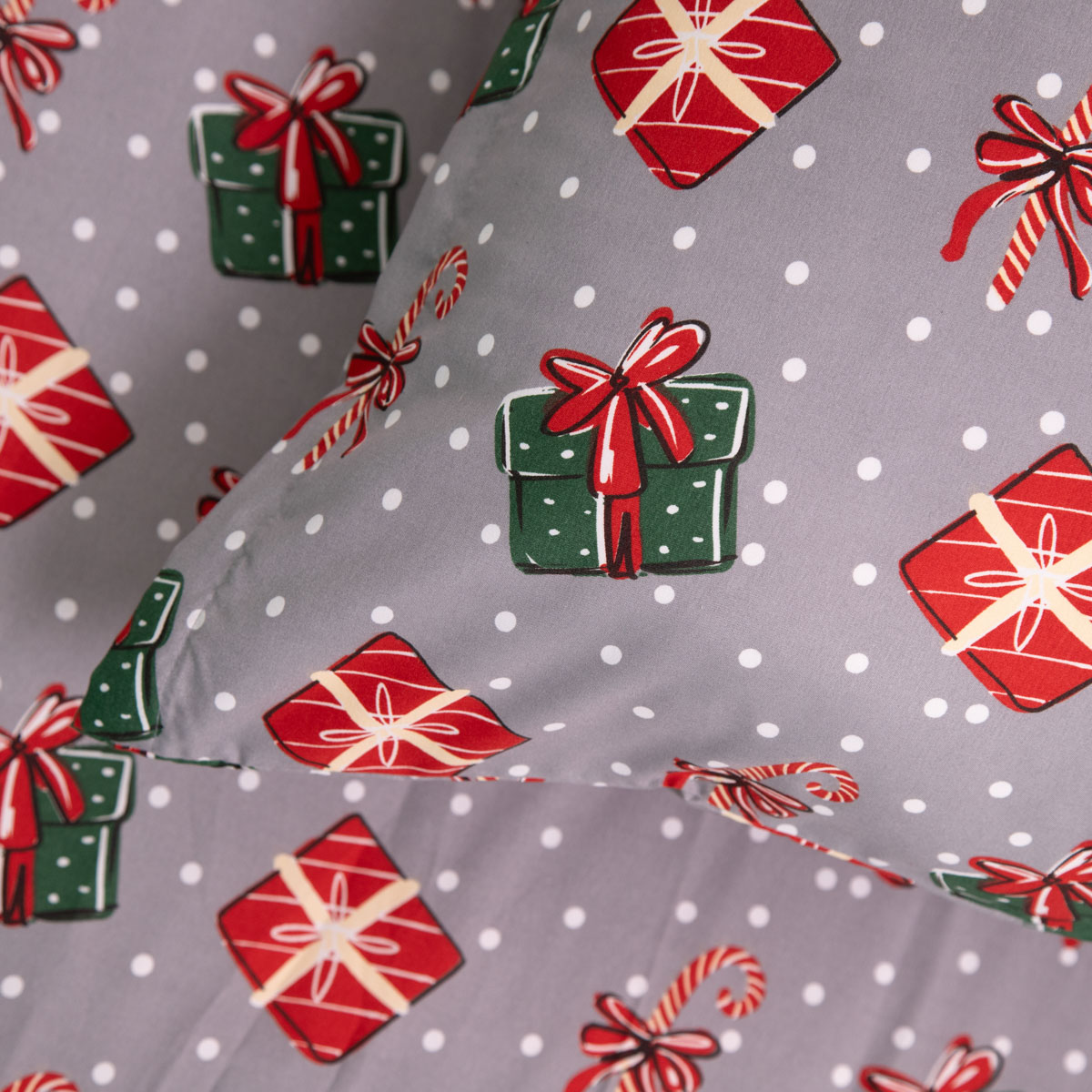 Рождественский комплект постельного белья FLORIANA HOMLA — идеальный выбор для тех, кто хочет привнести в свою спальню свежесть и радость. Комплект состоит из пододеяльника 160 x 200 см и двух наволочек 70 x 80 см Постельное белье украшено подарочными узорами, что придает спальне очарование и праздничный вид.
