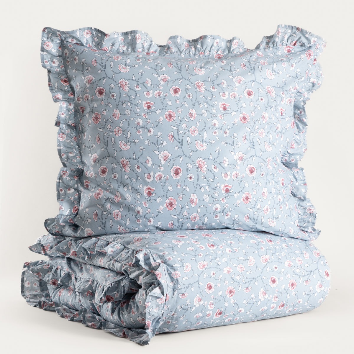 Пододеяльник сшит из 100% хлопка плотностью 115 г/м² — мягкого, дышащего и приятного для кожи. Изделие можно стирать при температуре до 30°C и гладить при макс. 150°C. Сушка в барабане не рекомендуется для сохранения мягкости и прочности ткани и формы оборок.