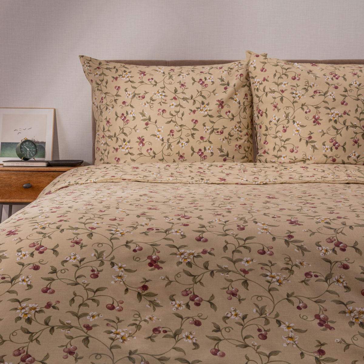 - Нежный цветочный узор на кремовом фоне