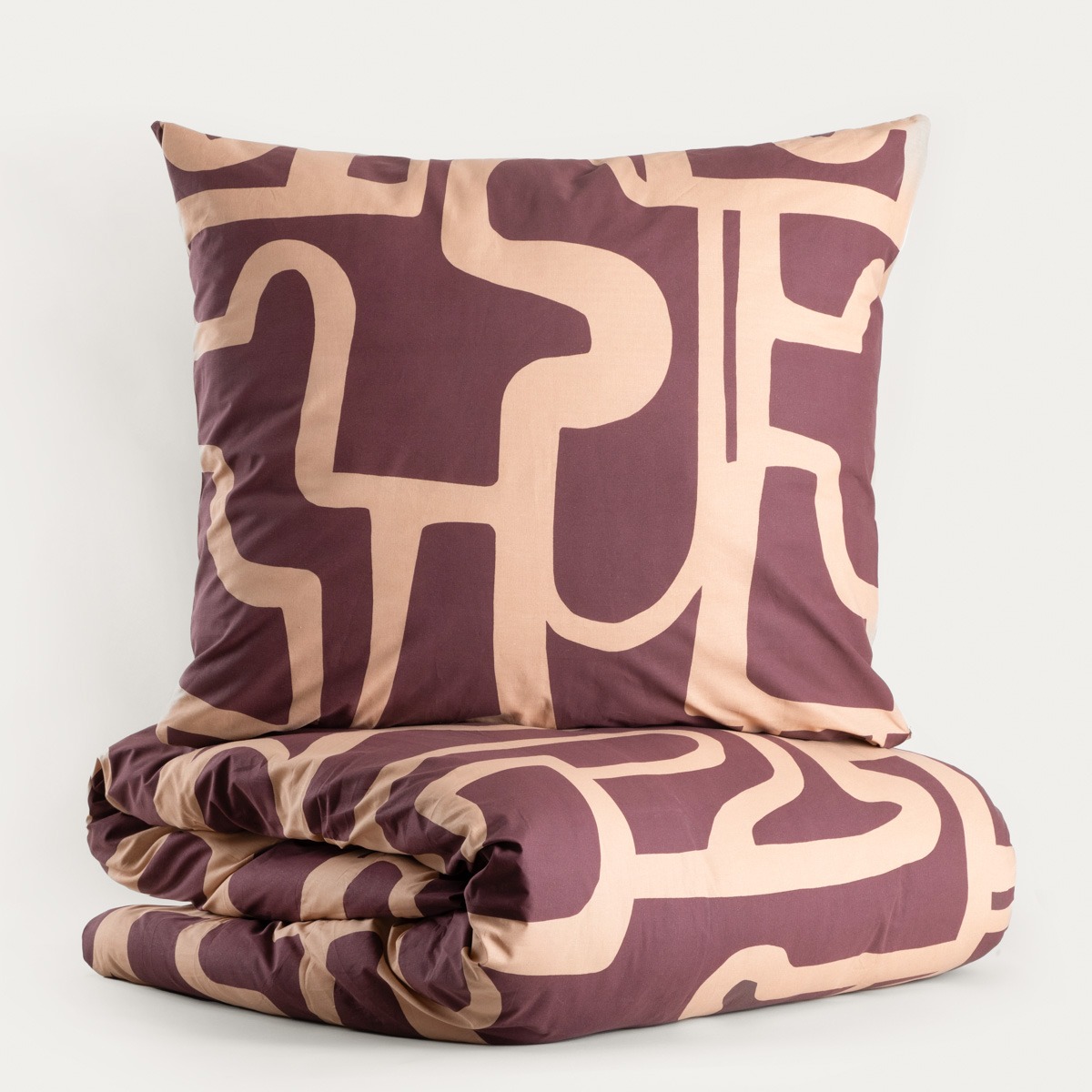 Постельное белье KARMEN — это идеальное сочетание комфорта и современного стиля. Абстрактный узор в приглушенных оттенках бежевого и бордового придает интерьеру уют и элегантность. Комплект состоит из одного пододеяльника 160×200 см и двух наволочек 70×80 см.