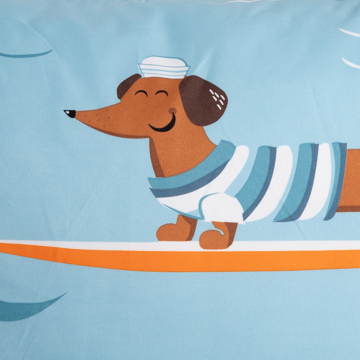 Комплект постельного белья LONGO размером 140 х 200 см с одной большой наволочкой 70 х 80 см прекрасно подойдет для односпальной кровати — как в детской, так и в подростковой комнате. Молния, вшитая по длинной стороне, позволяет быстро надевать и снимать постельное белье, что оценит каждый родитель. Рисунок с таксами придает интерьеру характер и превращает сон в настоящее приключение.
