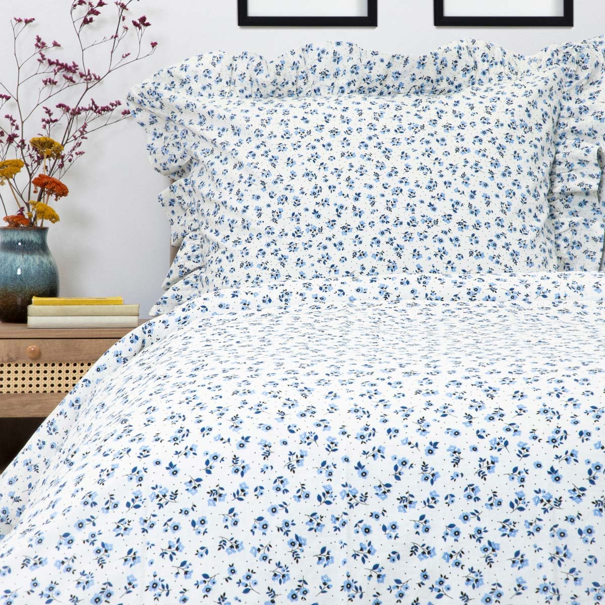 Постельное белье | MELANIE | хлопок с оборкой в голубых цветах | 160×200 см | 881126