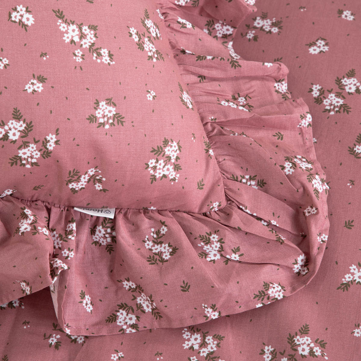 Прекрасный комплект постельного белья с цветочным узором. Постельное белье MIRYA HOMLA — утонченная модель, которая придаст вашему интерьеру неповторимый характер. Комплект состоит из пододеяльника размером 160 x 200 см и двух наволочек размером 70 x 80 см. Розовое постельное белье с цветочным мотивом — идеальное дополнение, которое смягчит и согреет характер интерьера. Оборка на концах придает ему милый штрих, делая его эстетически привлекательным украшением спальни.