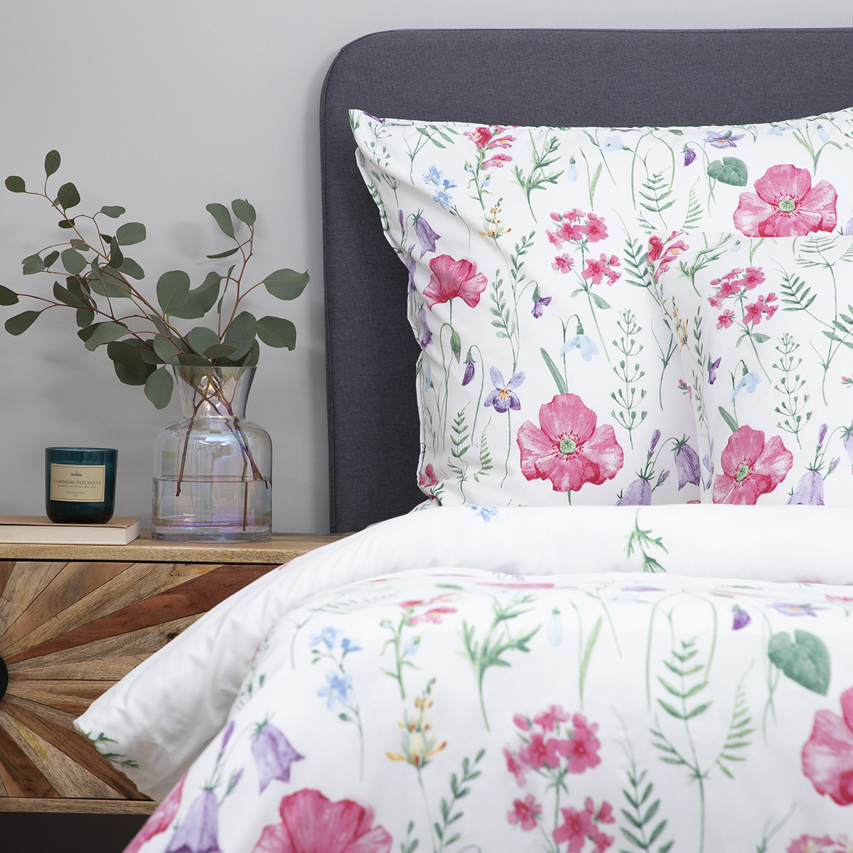 Комплект постельного белья PERHONEN создан для тех, кто ценит нежную эстетику и тонкие весенние узоры. Он пригодится в минималистичных спальнях, в которые хочется привнести немного безумия. Он богат узорами, поэтому не подойдет для спален с сильными акцентами на стенах. Оно будет прекрасно сочетаться с аранжировками на основе белых и пастельных тонов.
