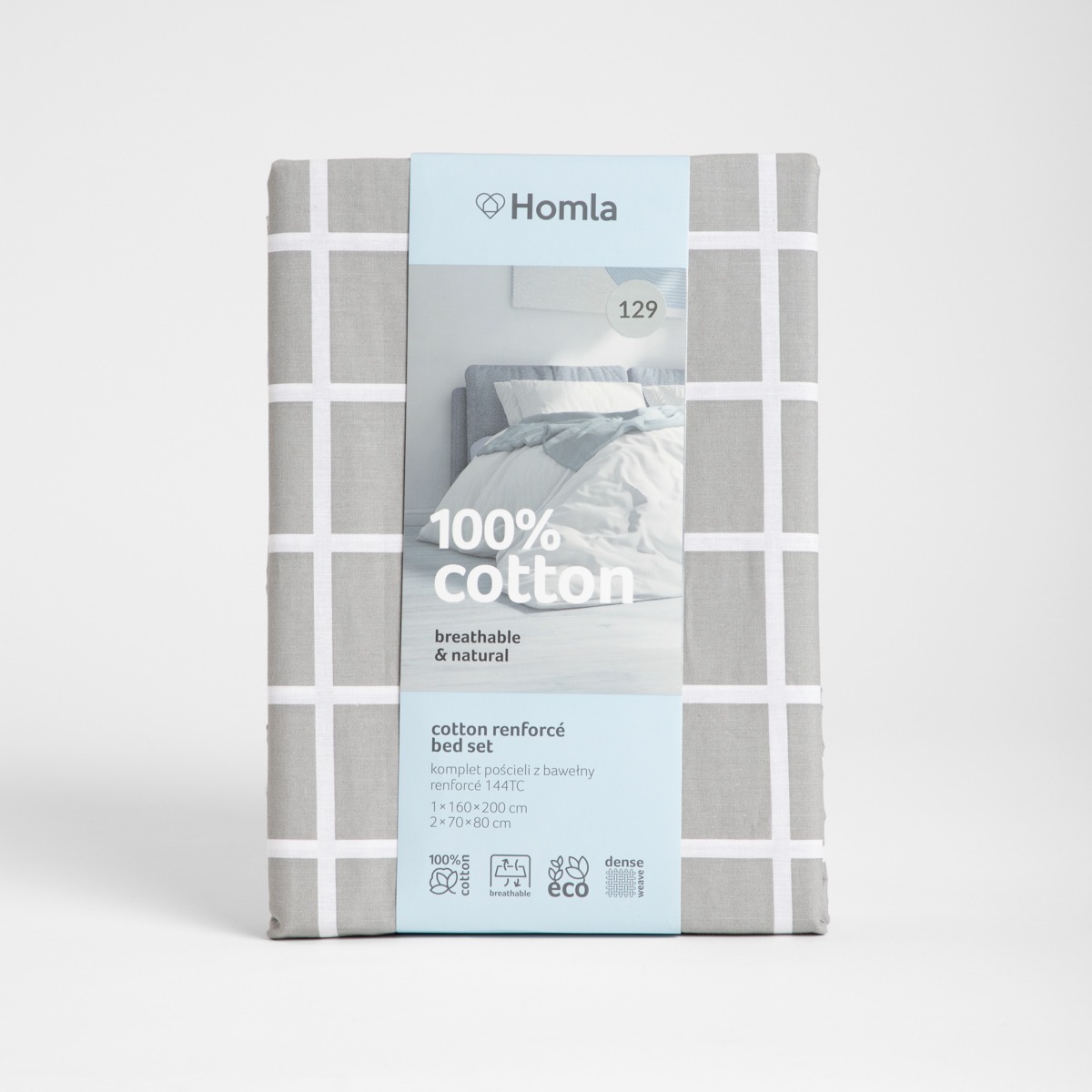 REYES хлопковое двуспальное постельное белье серо-белого цвета 160×200 см…