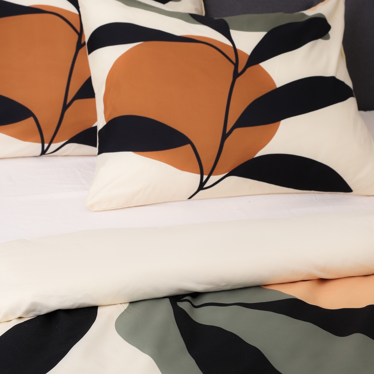 Постельное белье TIERRA — это элегантное и шикарное изделие — оно привносит в комнату приятную и милую атмосферу. Необычный дизайн привлекает внимание и восхищает. Оно выполнено в светлых и приглушенных оттенках бежевого и украшено рисунком в сочетании черного и оранжевого. Хорошо сочетается с другими предметами обстановки.