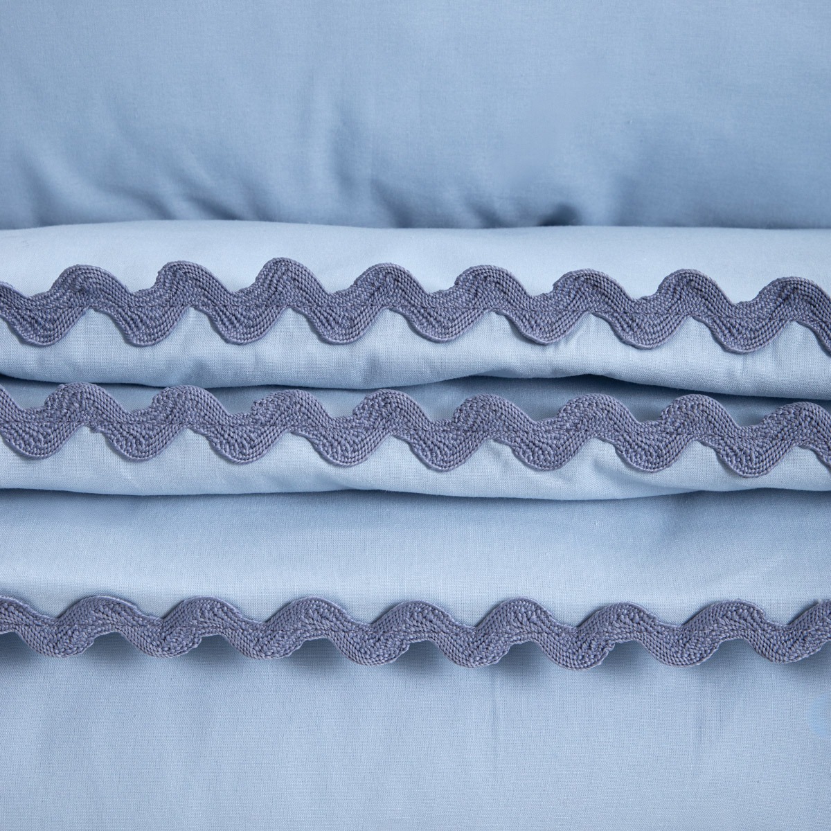 Хлопковое постельное белье VELA с декоративной отделкой голубого цвета 160×200 + 2*70×80 см…