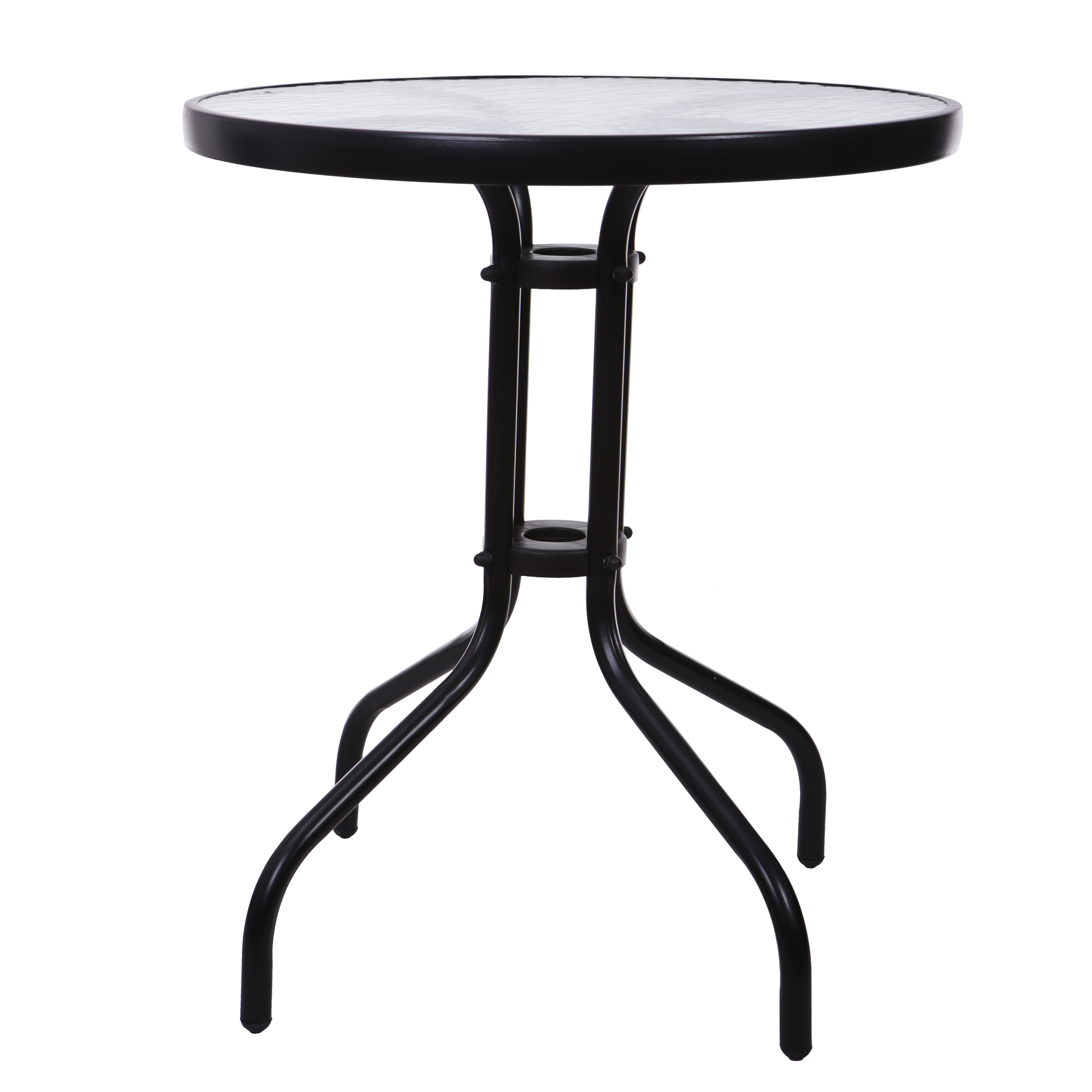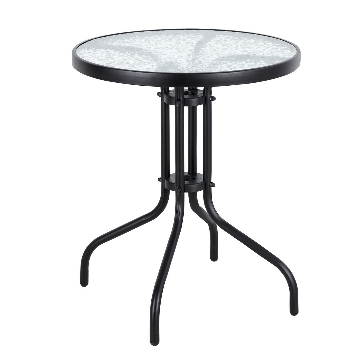 Круглая столешница диаметром 60 см обеспечивает пространство для 4 человек, которые могут удобно расположить на ней свои напитки и даже поесть. Металлическая конструкция обеспечивает устойчивость, а столешница из закаленного стекла делает стол прочным и безопасным даже при больших нагрузках.
