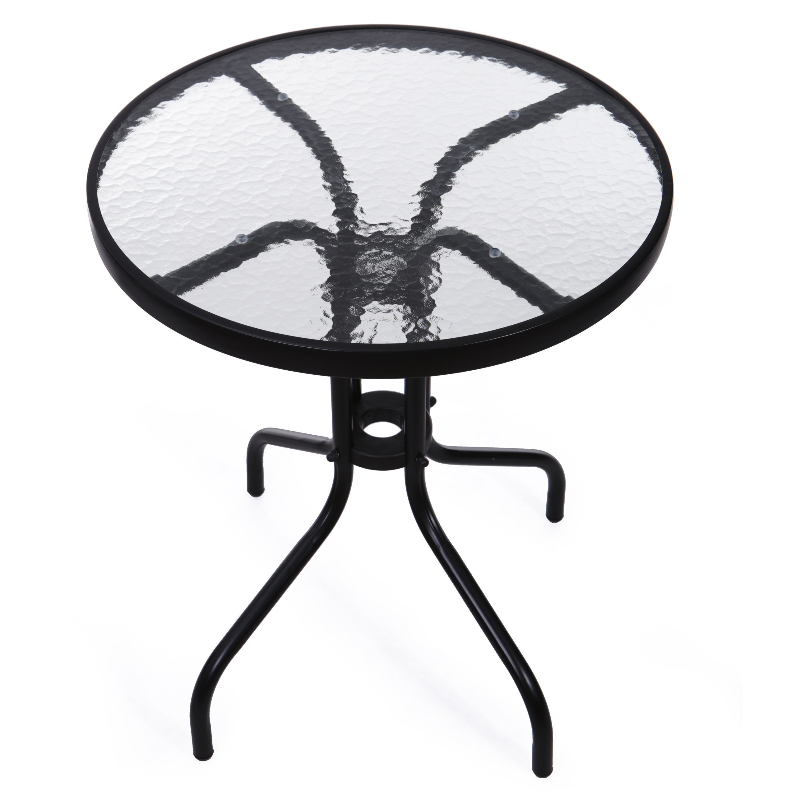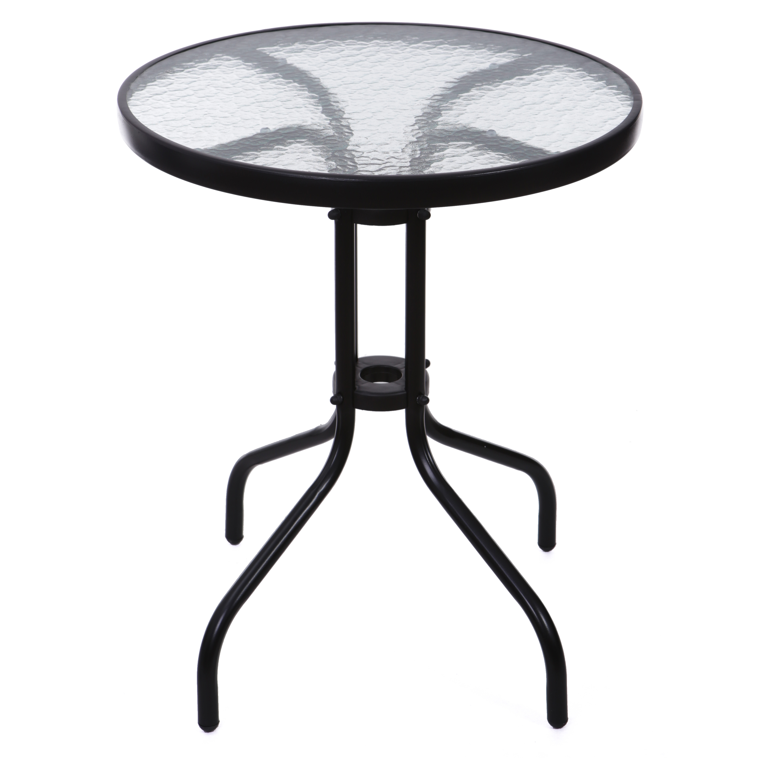 • Столешница из закаленного стекла диаметром 60 см с изящным рисунком