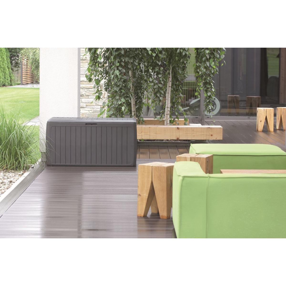 Поддерживайте порядок в своем патио и саду с помощью бокса BOXE BOARD 290L — функционального, эстетичного и устойчивого к атмосферным воздействиям. Это практичное решение для повседневного использования, сочетающее в себе удобство и элегантный дизайн.