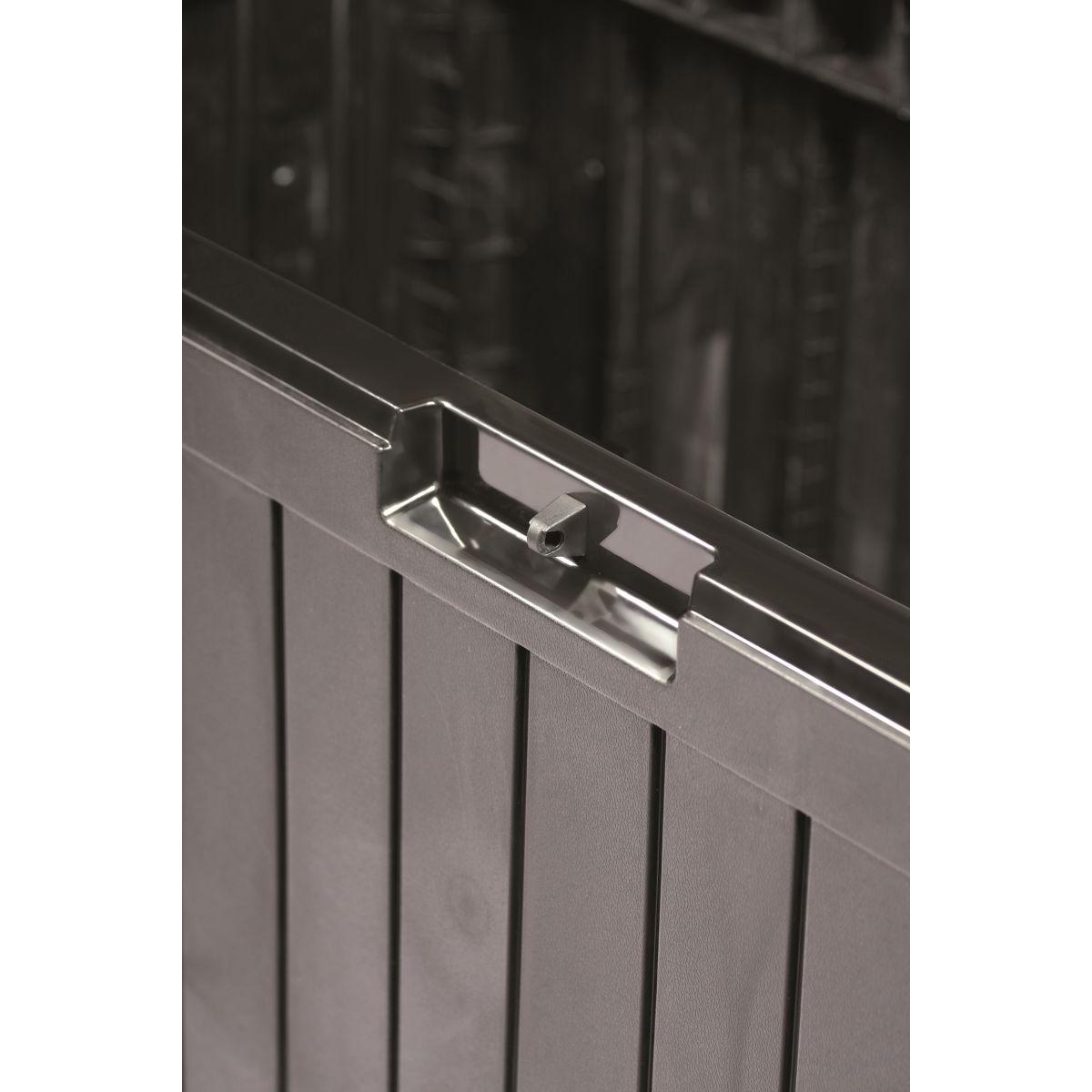 Садовый бокс UMBRA 290L — это не только практичное место для хранения, но и декоративный элемент, подчеркивающий эстетику вашего открытого пространства. Его прочная конструкция и устойчивость к атмосферным воздействиям гарантируют длительное использование без технического обслуживания. Дополнительные функции, такие как держатель для навесного замка и колесики, добавляют ему удобства, делая его идеальным выбором для любого сада, террасы или балкона.