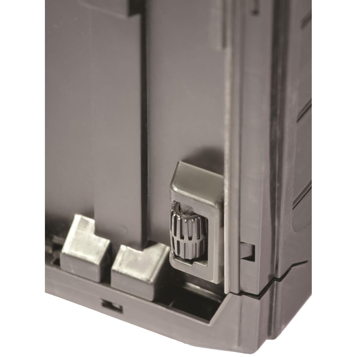 Простой, но надежный механизм открывания делает его быстрым и удобным в использовании, а дополнительный держатель для навесного замка надежно запирает содержимое.