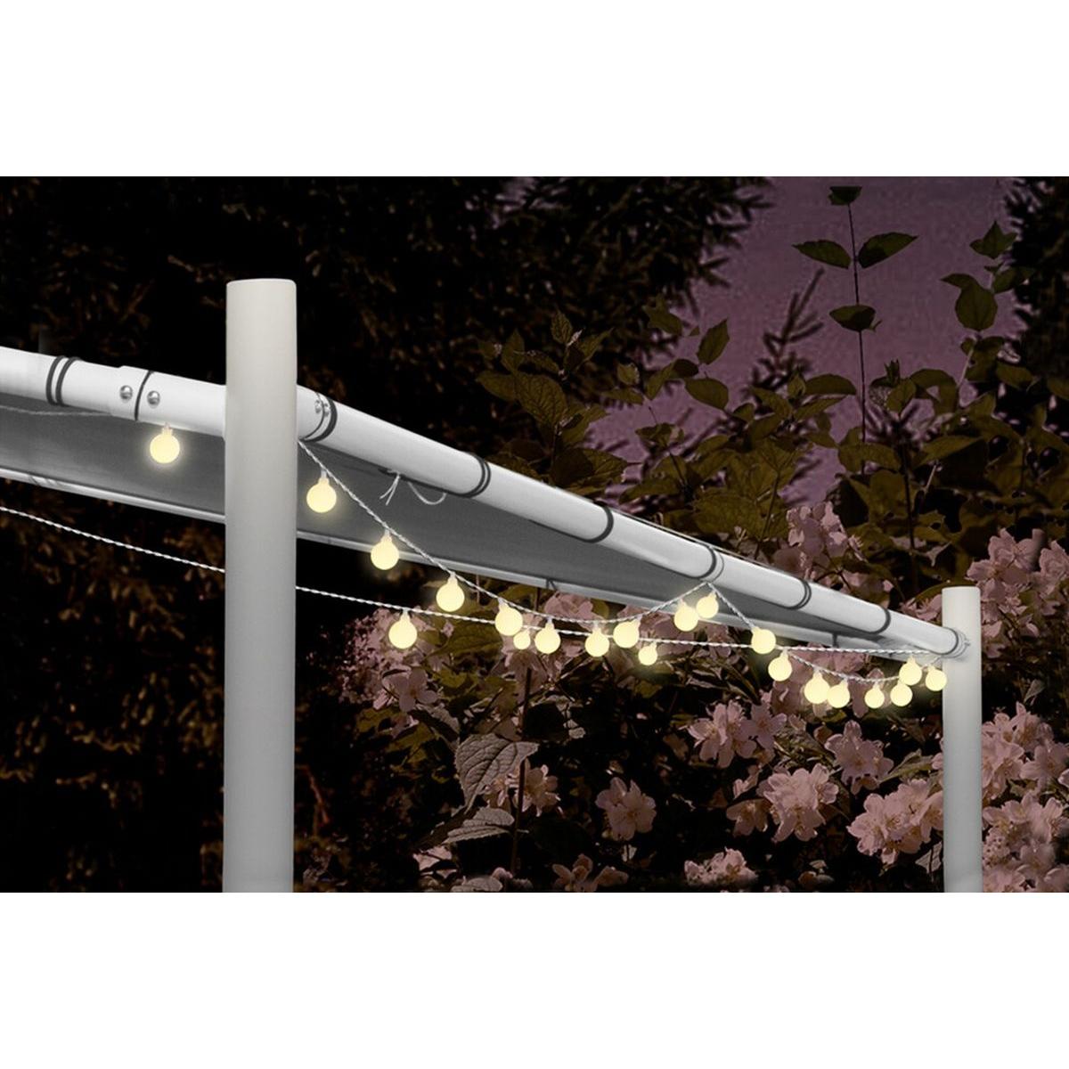 Гирлянда оснащена 80 энергосберегающими светодиодными лампочками, что гарантирует интенсивное и равномерное освещение по всей длине украшения. Такое количество световых точек обеспечивает не только великолепный визуальный эффект, но и большую площадь освещения — идеальный вариант как для небольшого балкона, так и для большого сада. Чем больше светильников, тем больше эффект «вау».