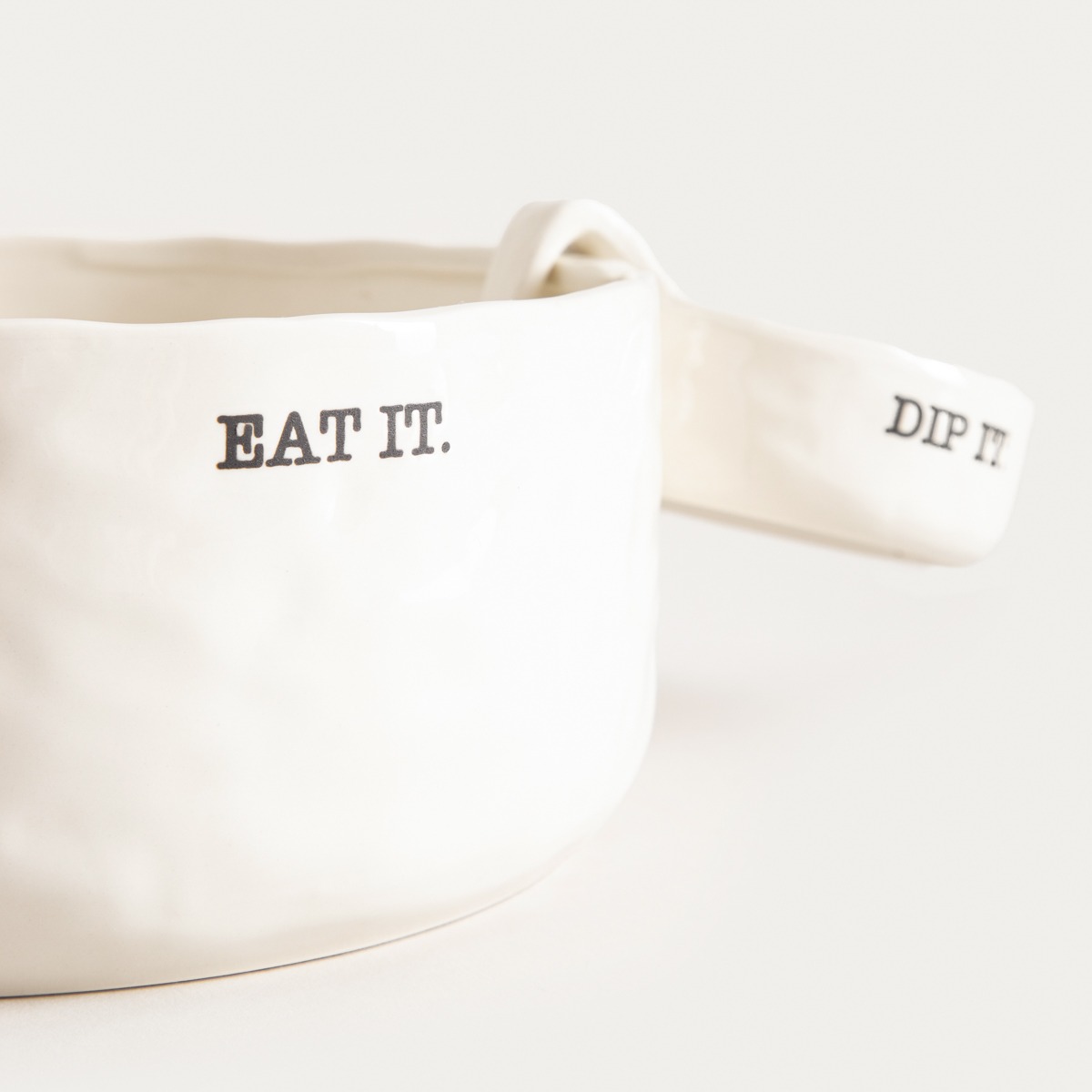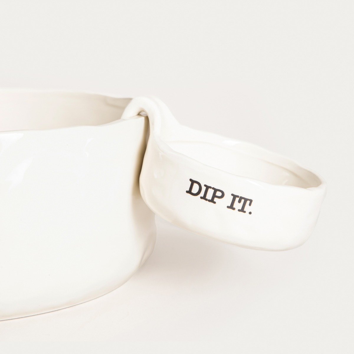 Фарфоровое блюдо MINK — это практичный и стильный способ подать закуски с любимым соусом. Благодаря отдельной чаше для соуса блюдо не только облегчает подачу блюд, но и прекрасно смотрится на столе. Белое, слегка неровное покрытие в сочетании с очаровательными надписями «EAT IT» и «DIP IT» создают великолепное целое.