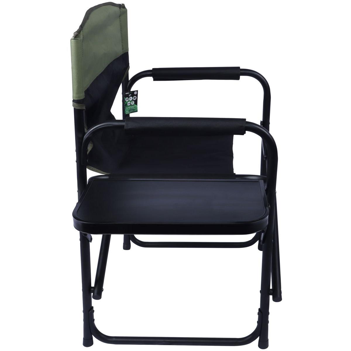 Кресло оснащено складным столиком, который позволит вам с комфортом поесть на свежем воздухе, не держа в руках чашку, а на коленях — тарелку или миску.
