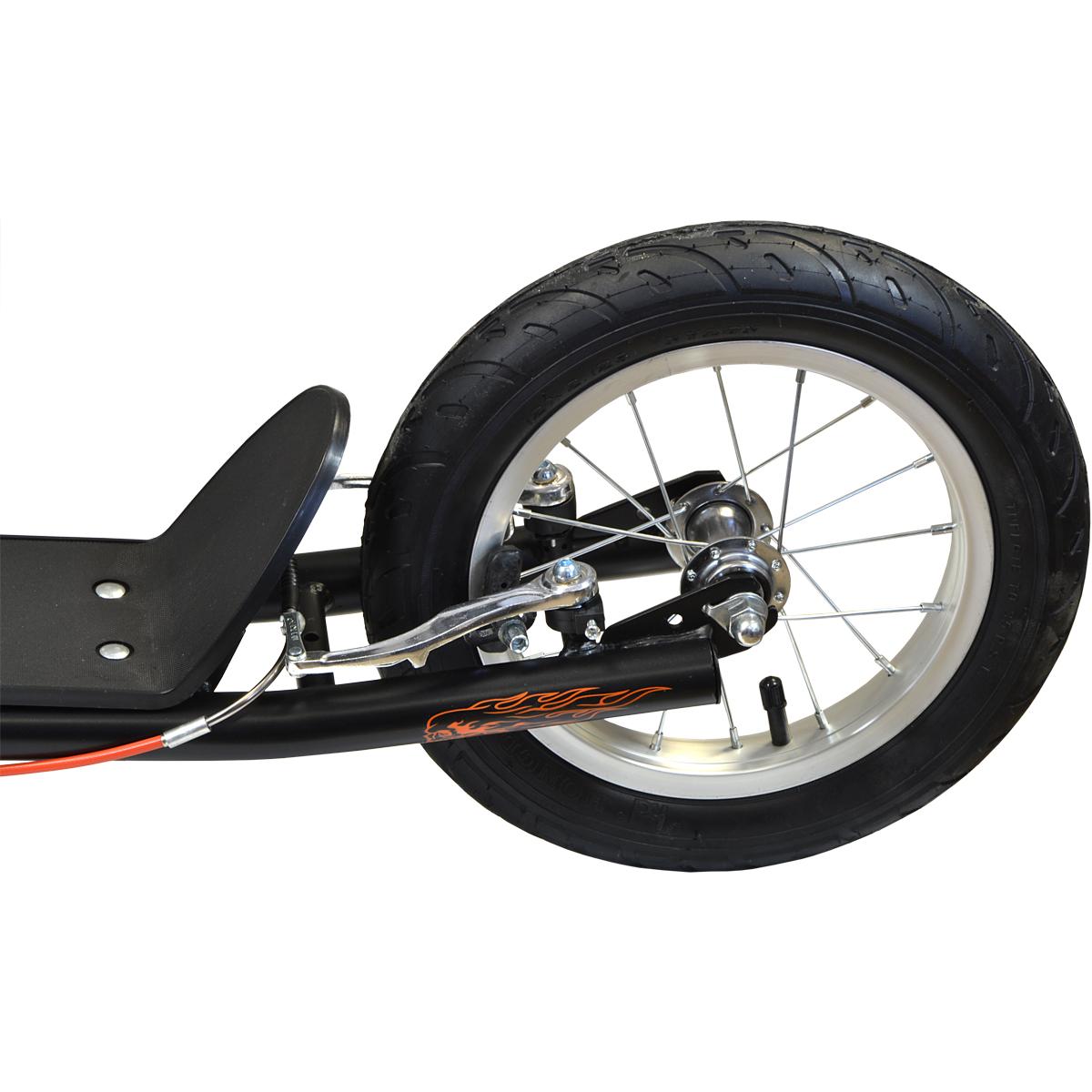 Самокат Enero GHOST RAIDER с прочной стальной рамой, тормозами V-Brake и силиконовыми ручками гарантирует максимальную безопасность. Надувные шины обеспечивают комфортную и динамичную езду и супервеселье!