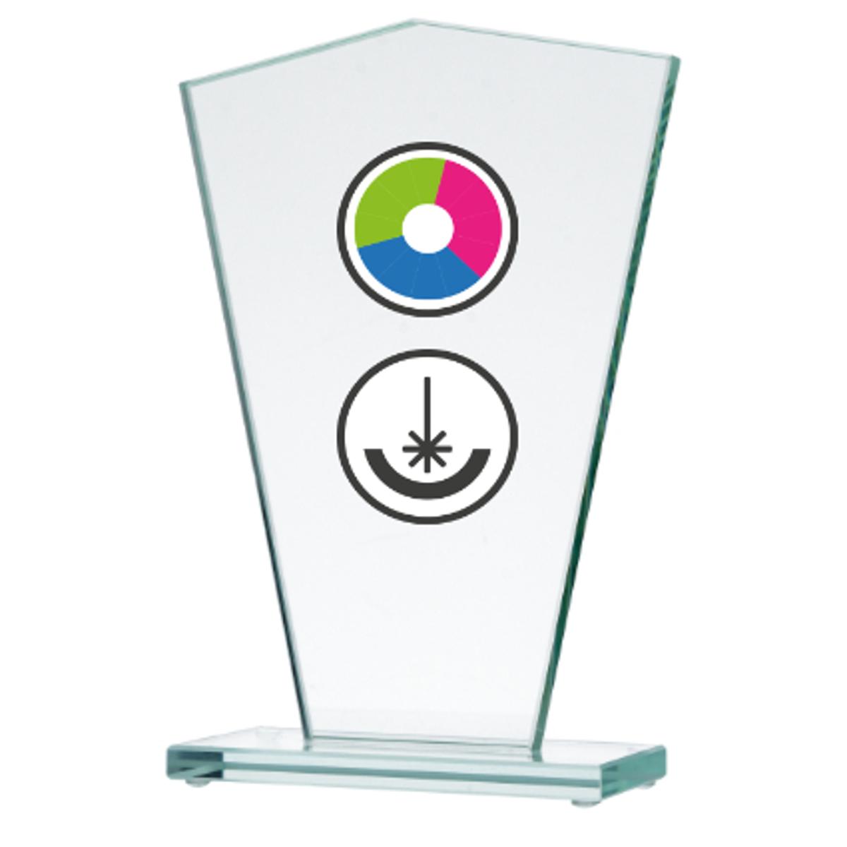 Стеклянный кубок с цветной печатью, гравировкой и заливкой краски LuxorJetСтеклянный кубок с цветной печатью, гравировкой и заливкой краски LuxorJet