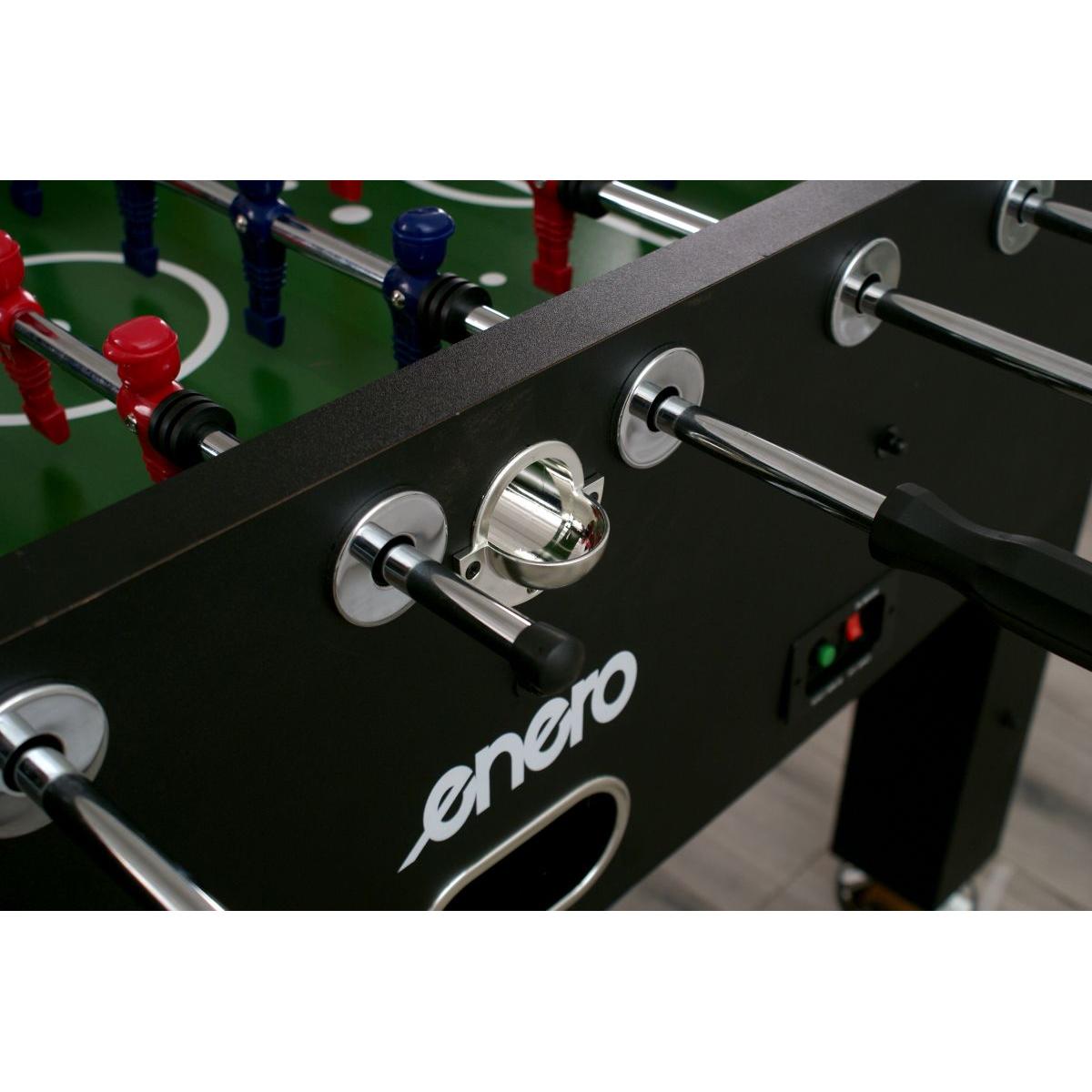 ЧЕРНЫЙ ФУТБОЛЬНЫЙ СТОЛ 142x76x88CM от ENERO гарантирует вам захватывающую игру в футбол, играя в роли игроков на поле, цель которых, как и на поле, забить гол команде соперника.