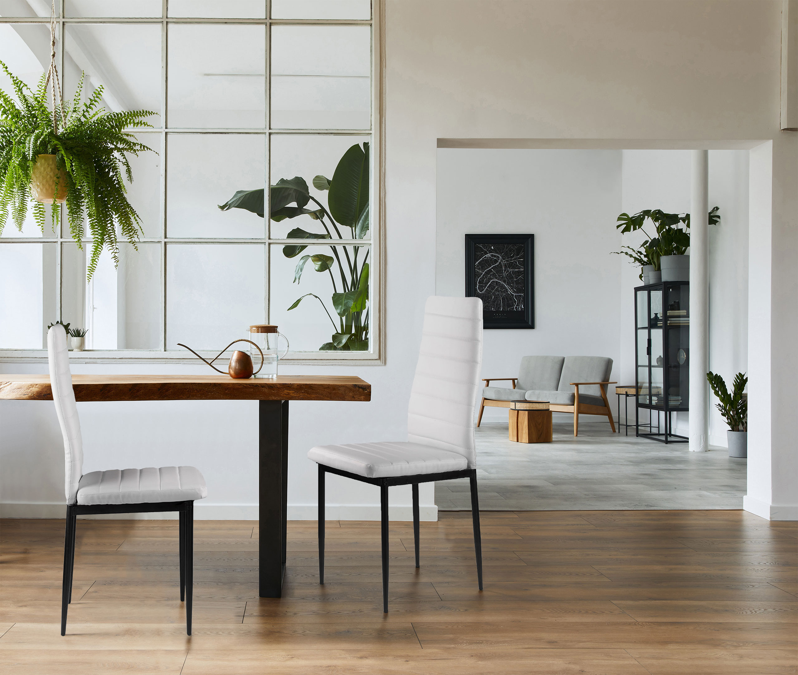 • ДИЗАЙН — белая обивка и черные ножки придают стульям элегантный и современный вид.