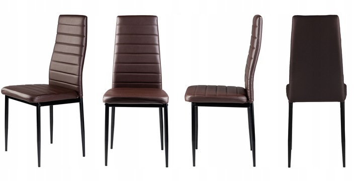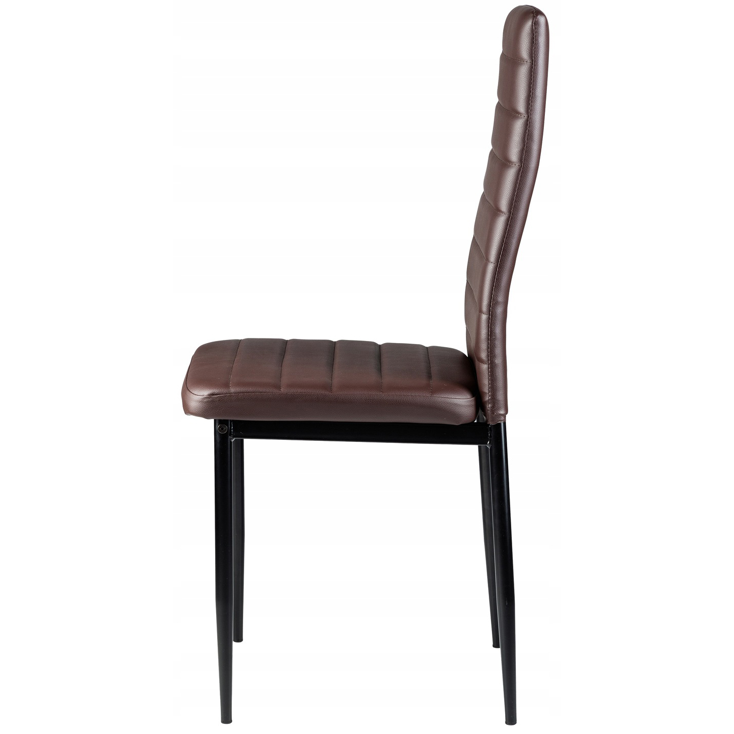 Эти стулья прекрасно дополнят ваш обеденный стол дома. Коричневая обивка из мягкой экокожи в сочетании с черными простыми ножками создает привлекательный образ, который хорошо вписывается в любой интерьер и придает ему неповторимый характер.