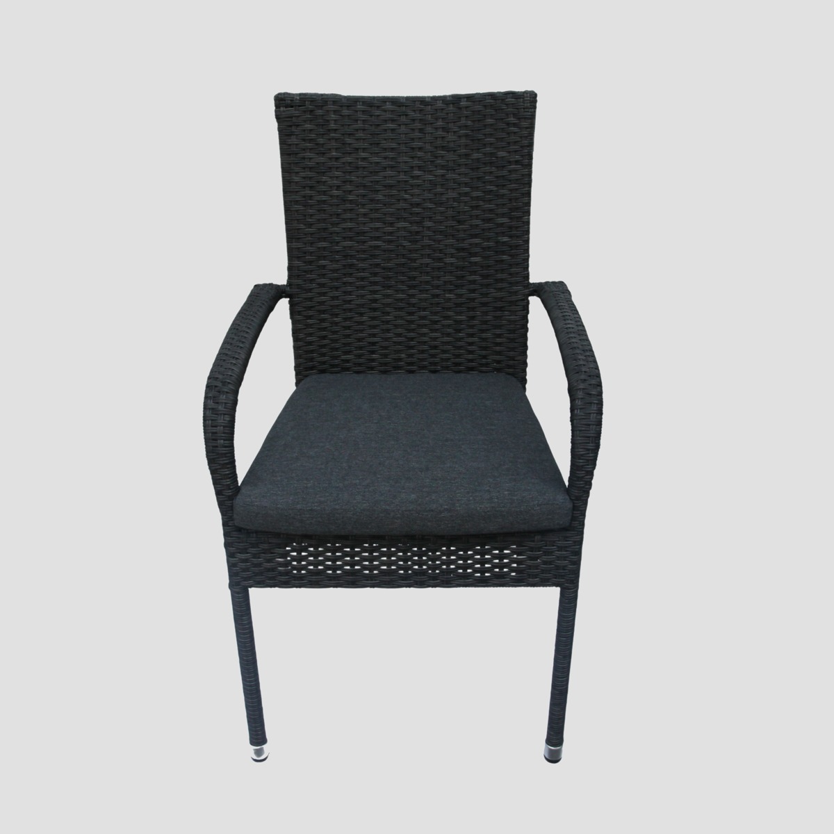 Стальная конструкция стула с порошковым покрытием обеспечивает высокую прочность. Сиденье и спинка сплетены из высококачественного техноротангового каната. Подушка, входящая в комплект кресла, сшита из прочного и приятного на ощупь полиэфирного материала.