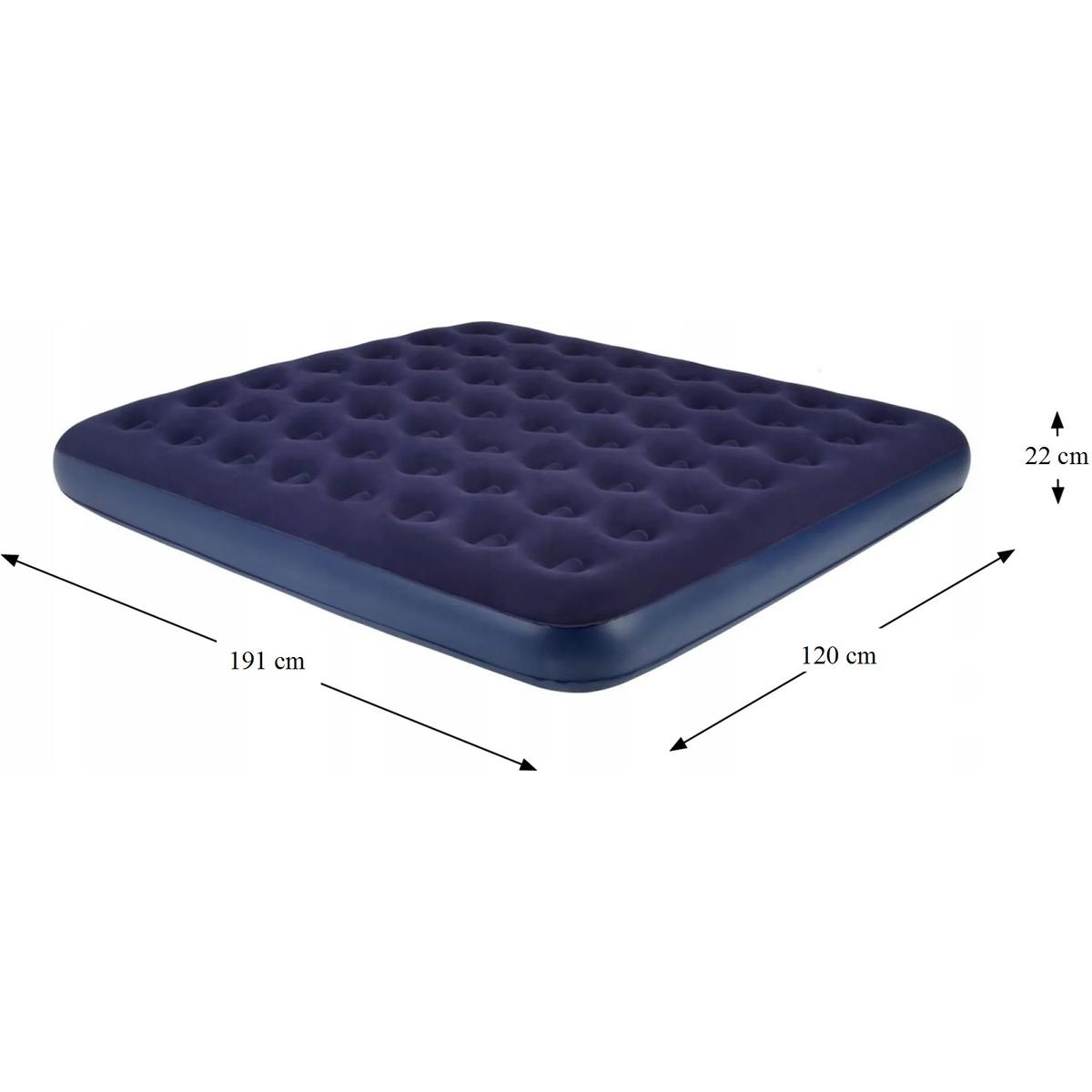 Надувной двухместный матрас 191X120X22CM изготовлен из высококачественного и прочного ПВХ, гарантируя вам или вашим друзьям отличный комфорт во время сна в дороге или дома.
