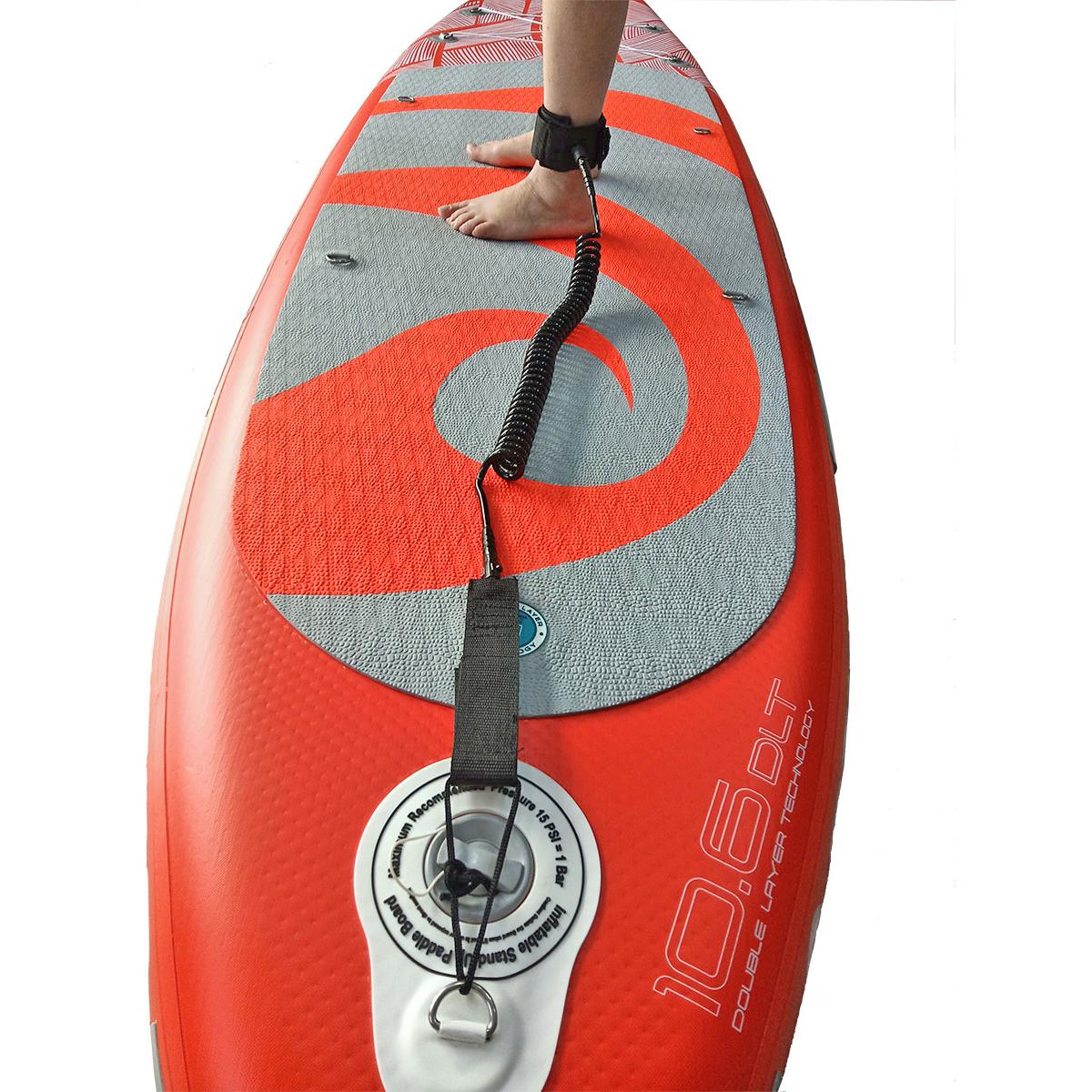 ENERO SAFETY LEASH FOR SUP 10 FOOTBOARD идеально подходит для всех любителей этого вида водного спорта. Крепления для ног и доски очень прочные, оснащены очень прочными липучками. Специальная большая петля-ручка в ножном манжете позволит вам расстегнуть его быстрым движением всего лишь одного пальца. Кроме того, ножная манжета подбита очень приятным материалом — неопреном — для предотвращения возможного натирания. Двойные поворотные коннекторы шнура за креплениями позволят вам безопасно встать на доску после падения, не запутавшись и не порезав кожу. Спиральный канат разматывается только при падении в воду, поэтому он не запутается у вас под ногами, и это тоже хорошо, ведь его максимальная длина составляет около 305 см!