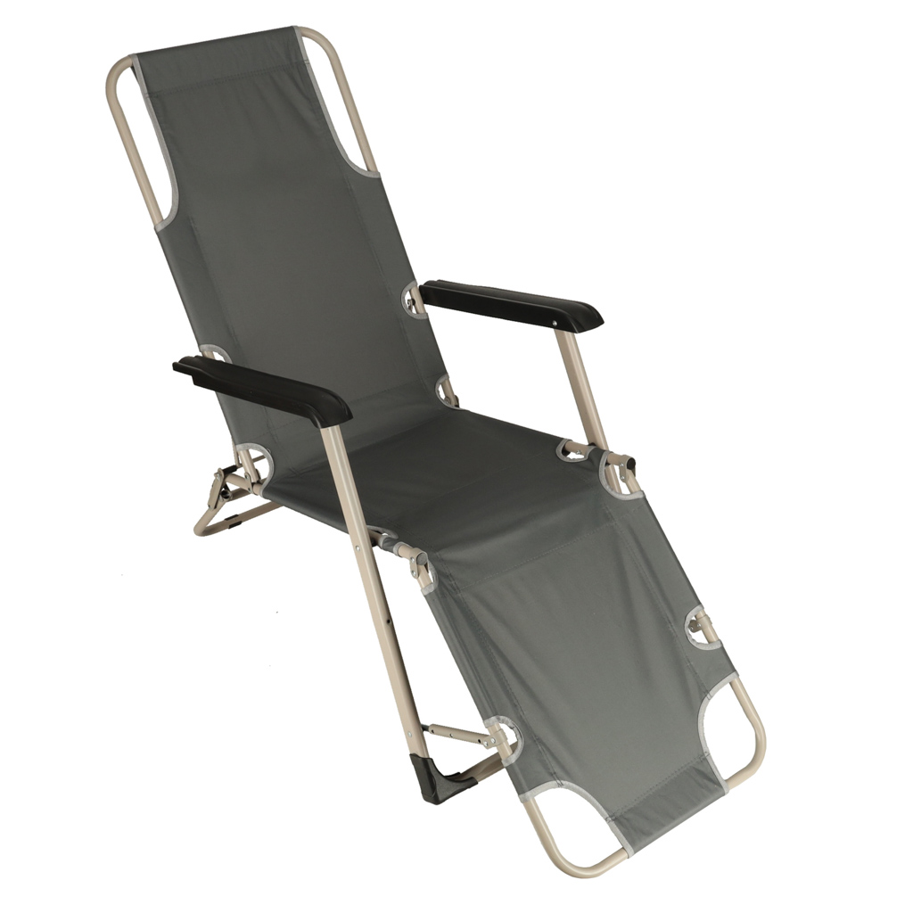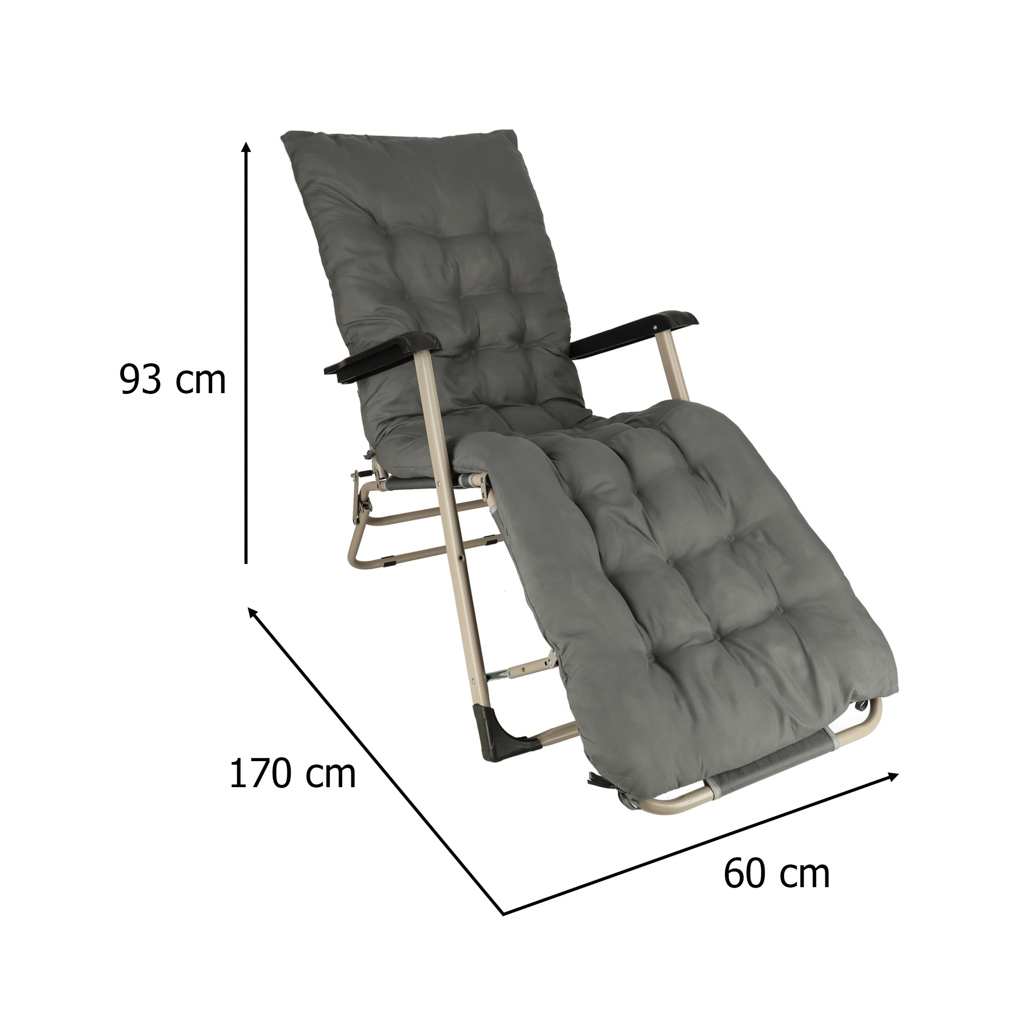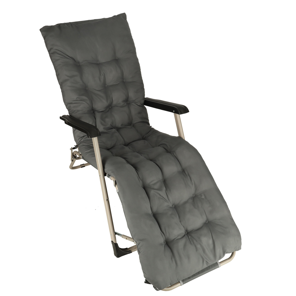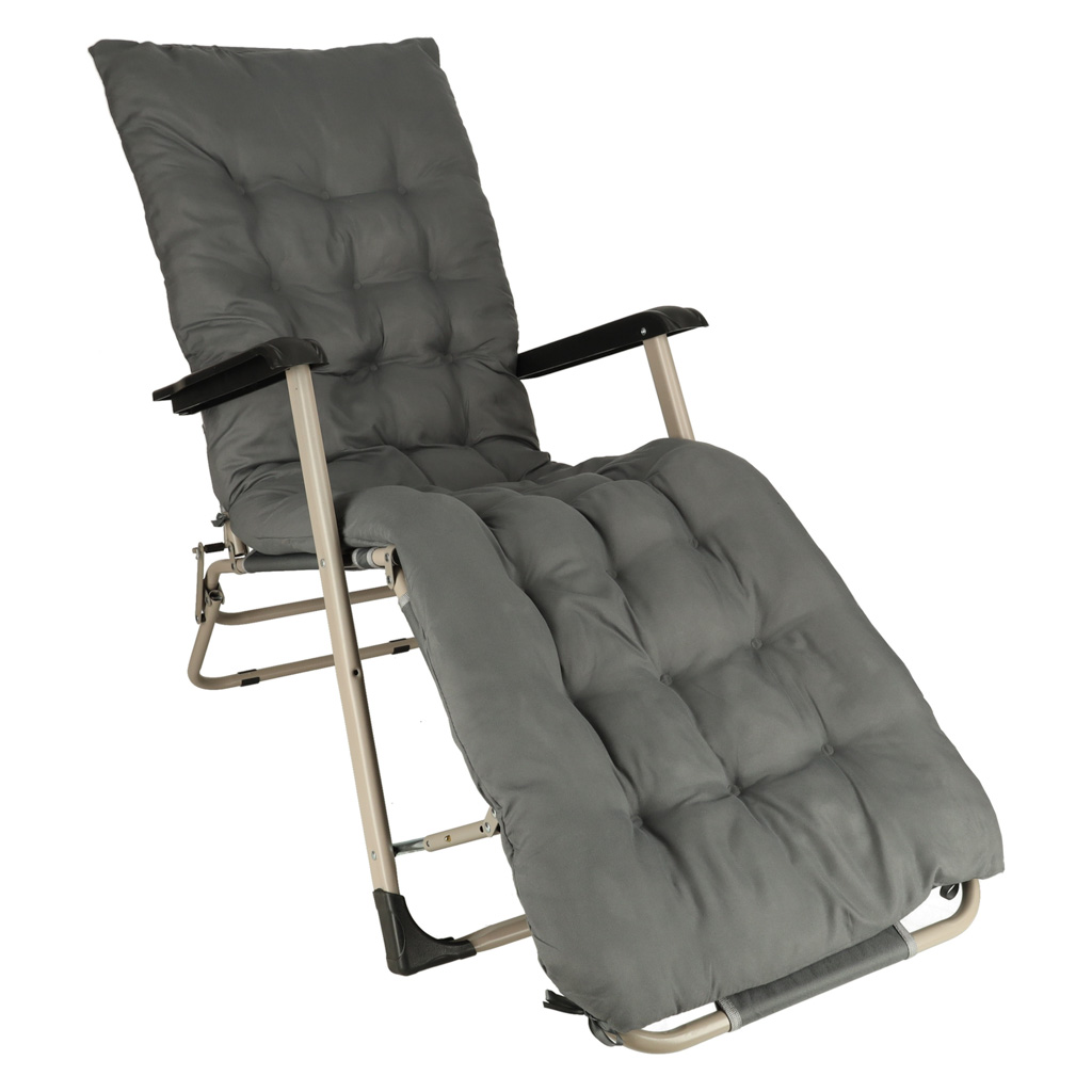 Туристический складной стул-шезлонг для сада LUARO с подушкой серыйТуристический складной стул-шезлонг для сада LUARO с подушкой серый