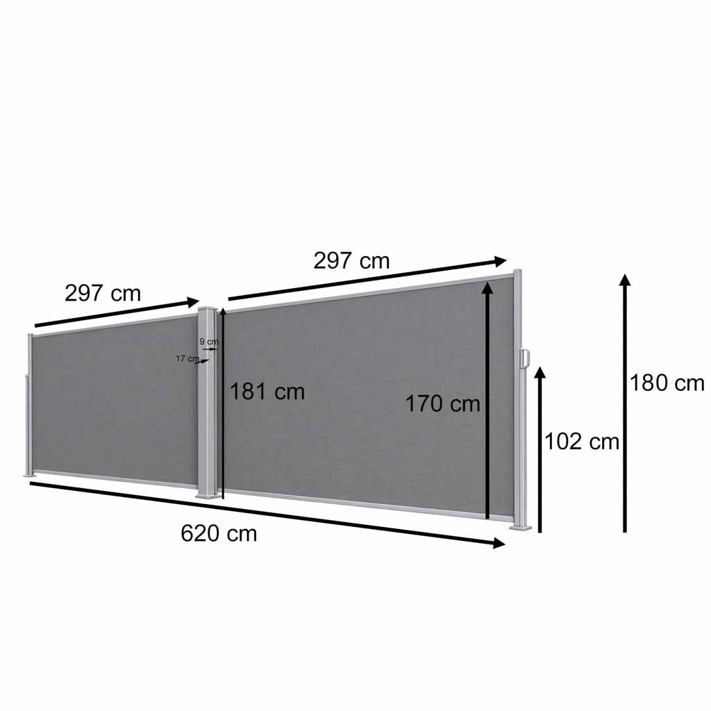 БОКОВАЯ МАРКИЗА ДЛЯ ТЕРРАСЫ 180X620 СМ — МАРКИЗА ДЛЯ ТЕРРАСЫ В КАССЕТЕ LUARO — СОВРЕМЕННАЯ БОКОВАЯ ЗАЩИТНАЯ ПЕРЕГОРОДКА