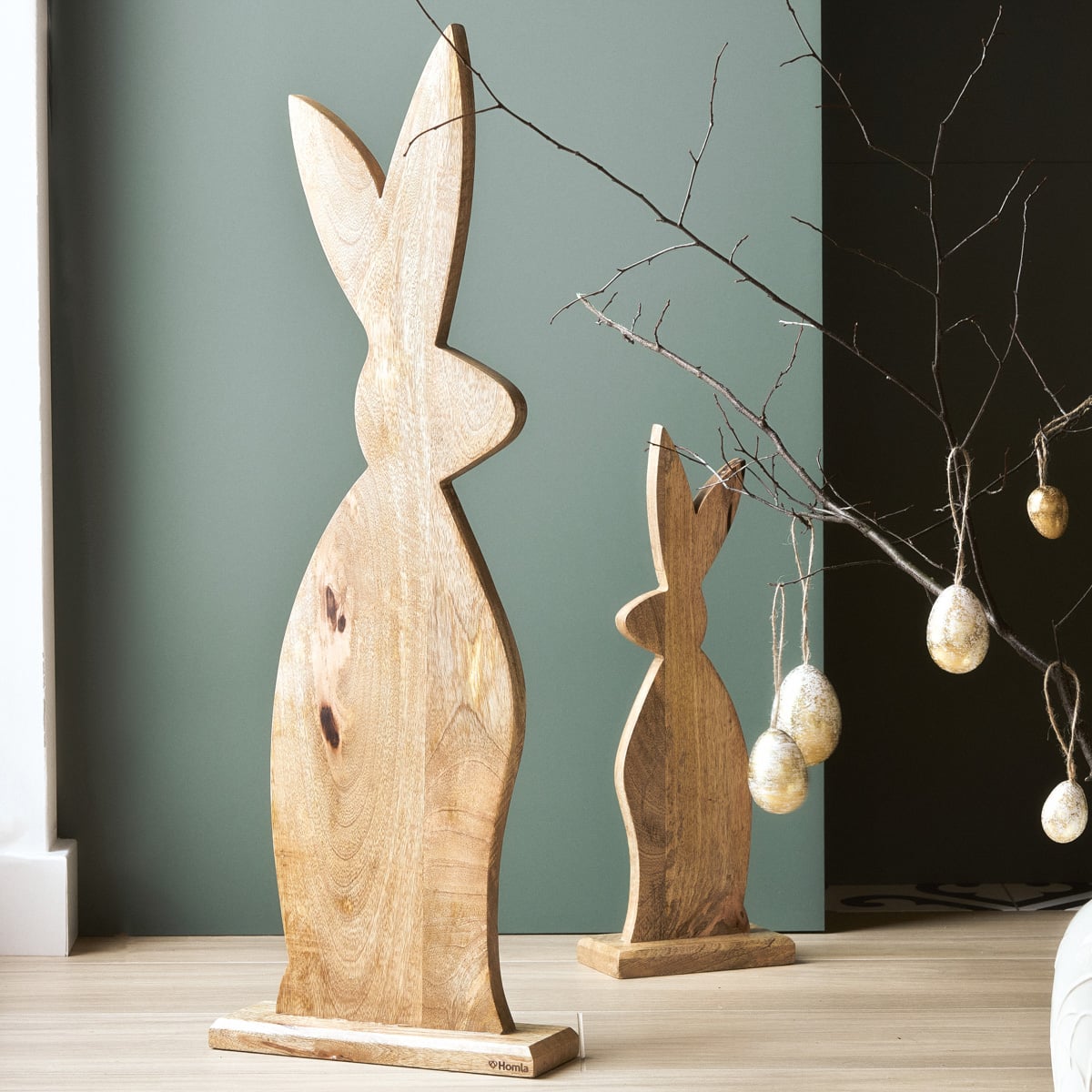 Пасха обладает особой атмосферой пробуждающейся весны, когда после серых зимних недель наступают моменты, когда светит солнце и появляются первые весенние цветы. Все это отражается в пасхальных украшениях, готовя которые, мы хотим наполнить квартиру праздничной атмосферой — мы стараемся сделать их натуральными, красочными, свежими. Пасхальное украшение HOMLA TOBY в виде большого деревянного кролика идеально вписывается в эту тенденцию.