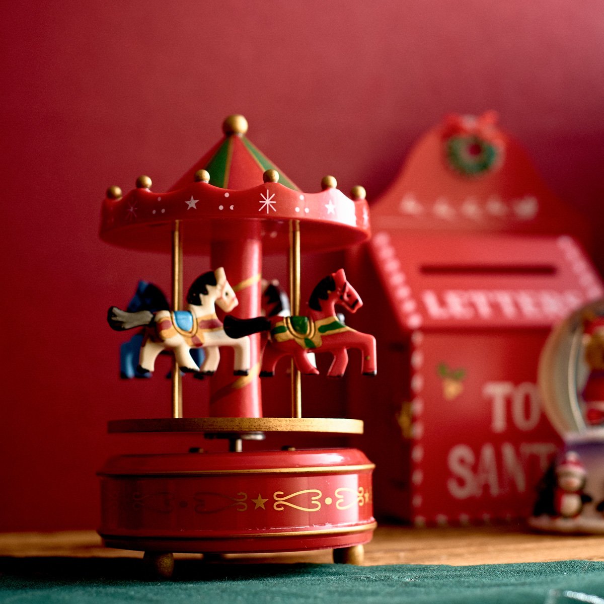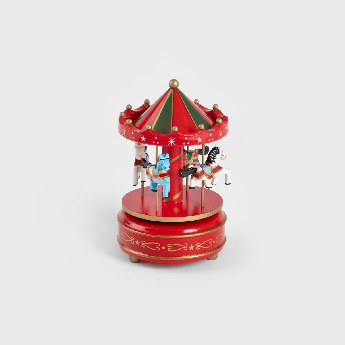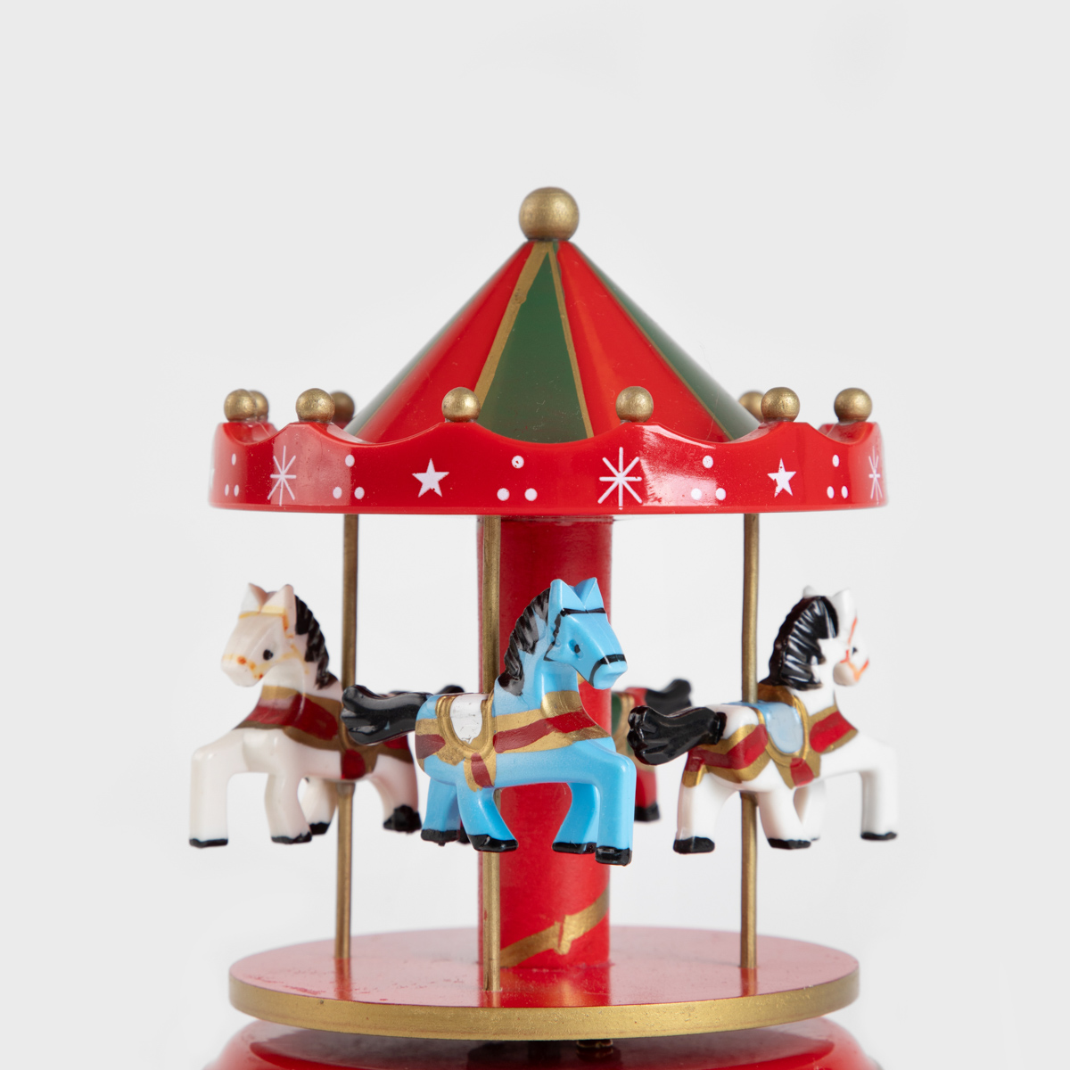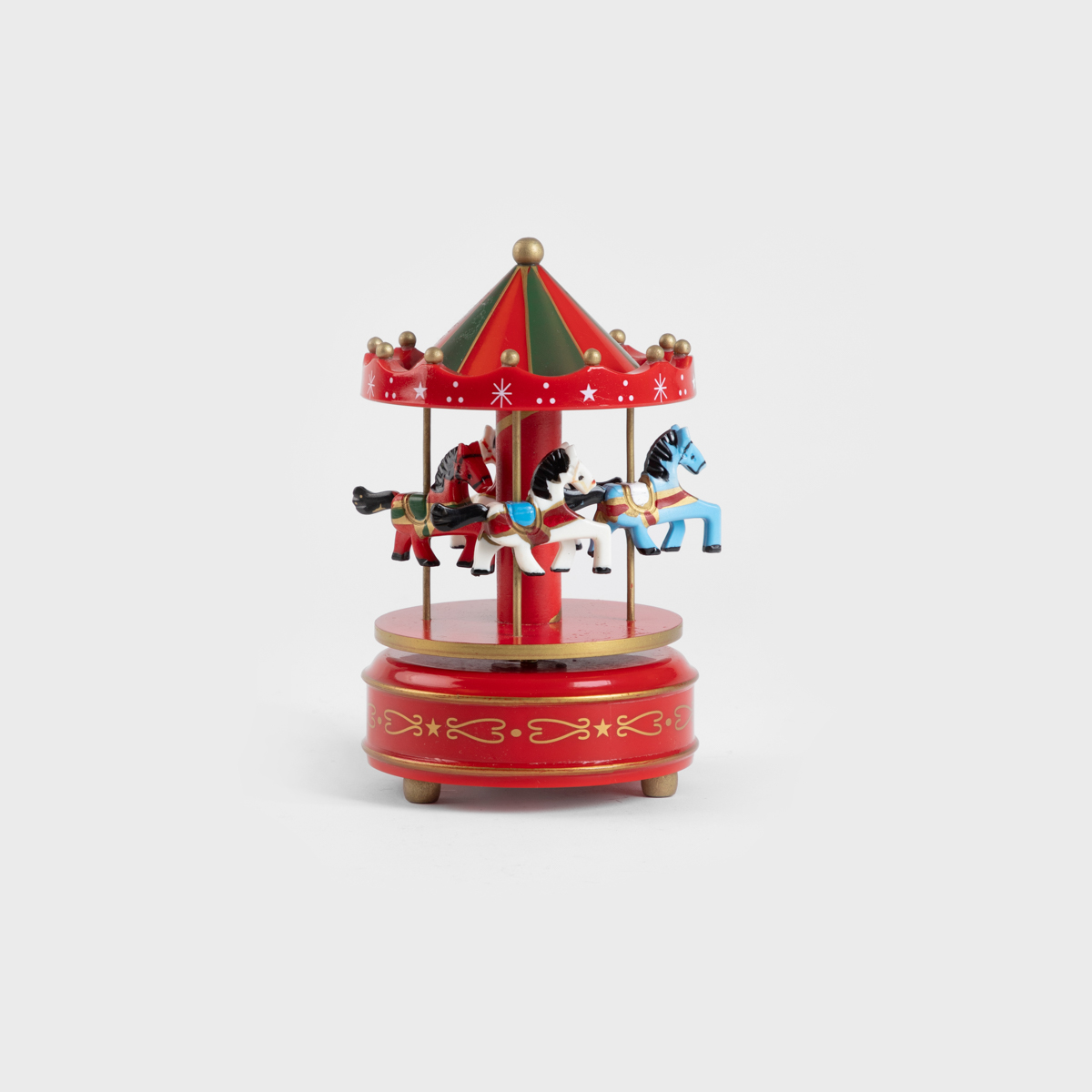 Фигурка SONGA — это очаровательное рождественское украшение, которое привнесет волшебную атмосферу в любой дом. Движущаяся карусель с лошадками, выполненная в классической красно-золотой цветовой гамме, вызывает ностальгические воспоминания о детстве. Это уникальный акцент, который прекрасно дополнит аранжировку.